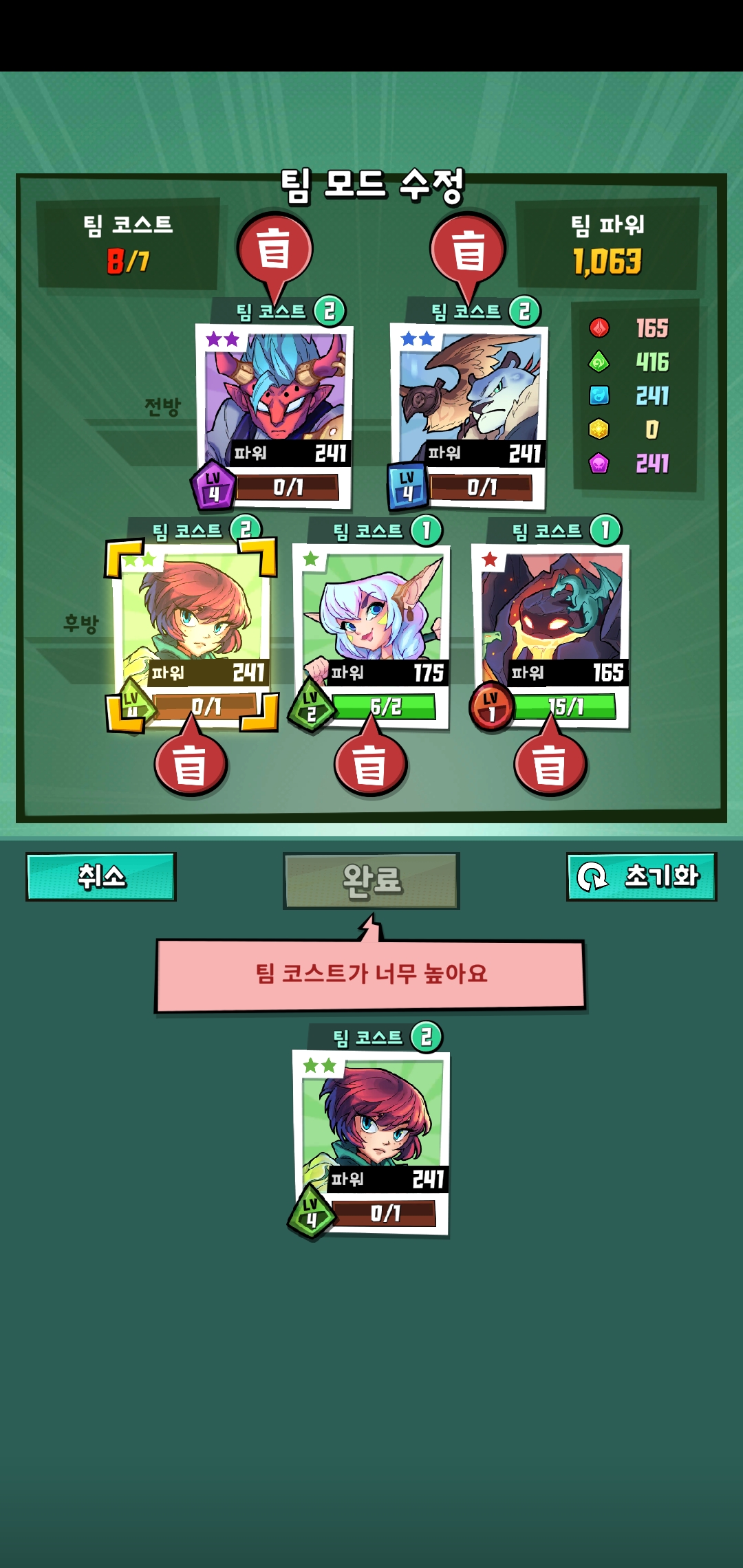 보다시피 계정 레벨업을 하면 팀 코스트 맥시멈이 증가한다. 매칭이 되면 상대방의 전력도 미리 확인할 수 있다. 앞서 말했듯이 팀 파워 차이가 나면 질 수가 없는 구조이다. 정말 퍼즐을 말도 안되게 하는 게 아니면 기본적으로 볼 때 그러하다.