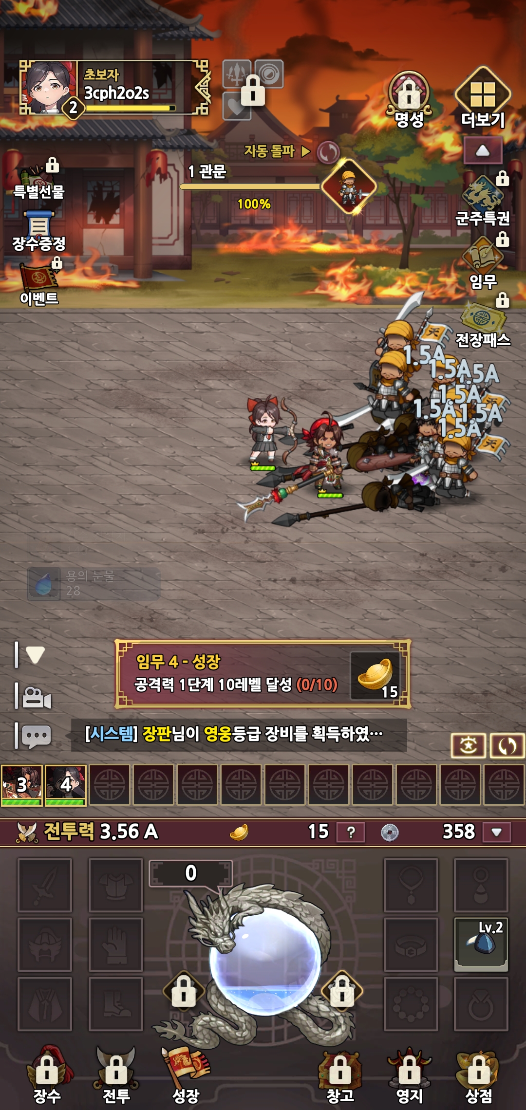 디자인은 일러레가 있는 것으로 보이고 그래픽도 퀄리티가 괜찮았다. 좋은 편이라고 생각되고 일러스트는 전형적인 그냥 삼국지 컨셉의 방치형RPG에서 볼 수 있는 느낌이지만 역시 퀄리티 자체는 좋았다.
