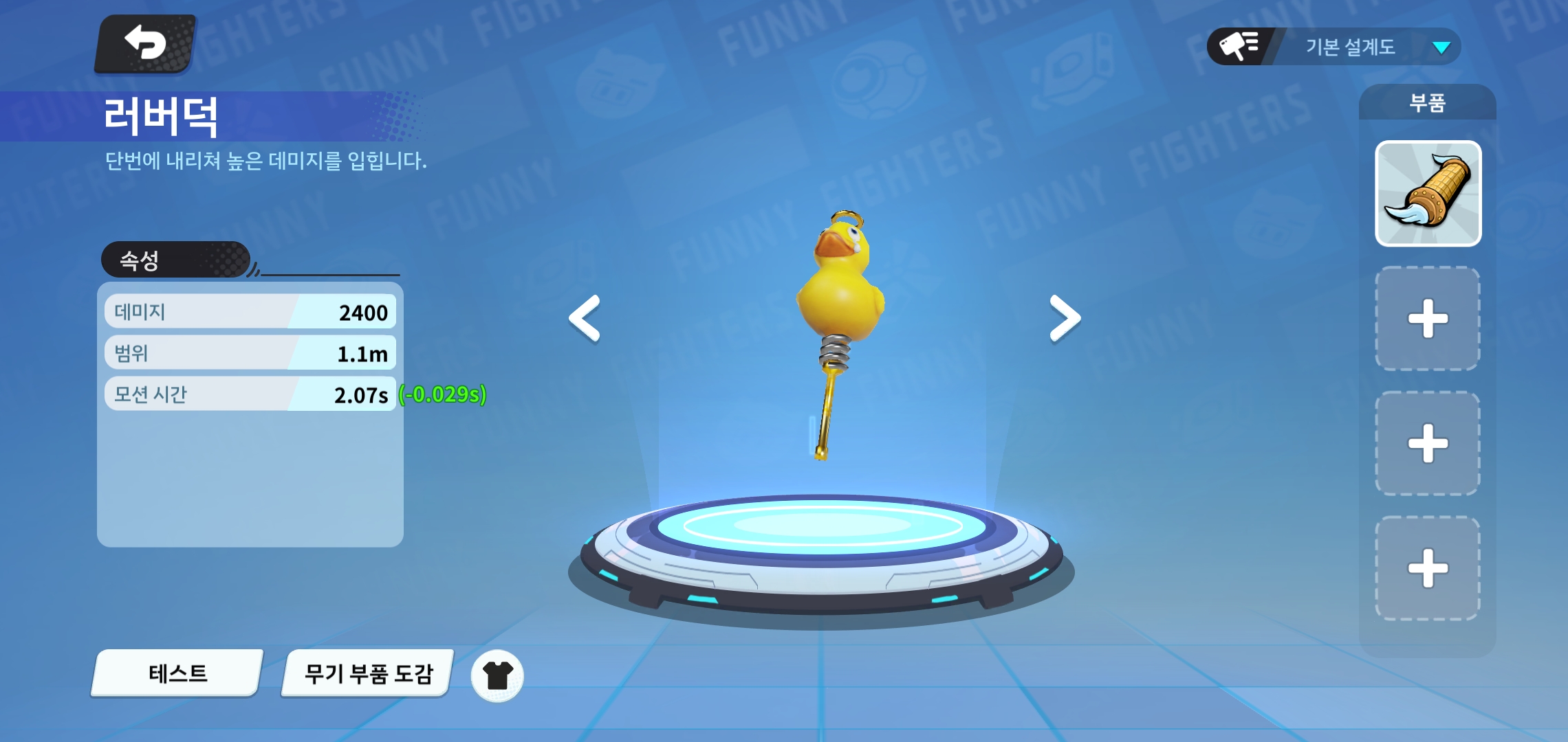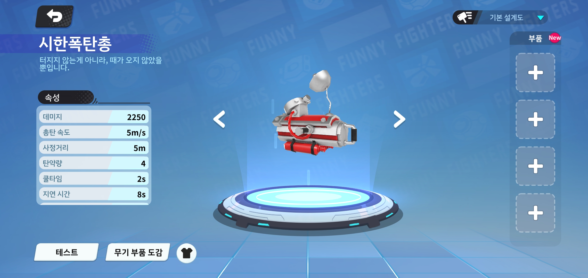 캐릭터들은 뭐... 좋게 말하면 아이들이 좋아할만한 디자인이었다. 이건 많이 아쉽다만... 뭐 타겟팅을 분명하게 하는 건 필요한 일이니... 넘어가고. 무기들은 '부품'을 장착할 수 있다. 보다시피 총 4개의 부품을 장착할 수 있고 부품 장착을 통해서 무기를 더 강력하게 만들 수 있다.
