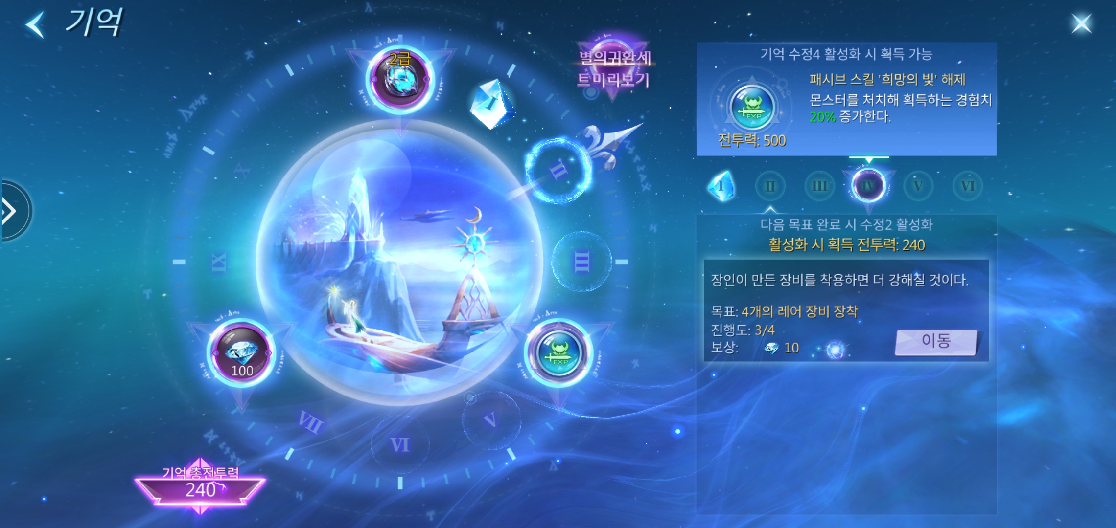 '기억'은 패시브 해금과 보상을 받는 시스템이다. 많은 단계가 있었다.