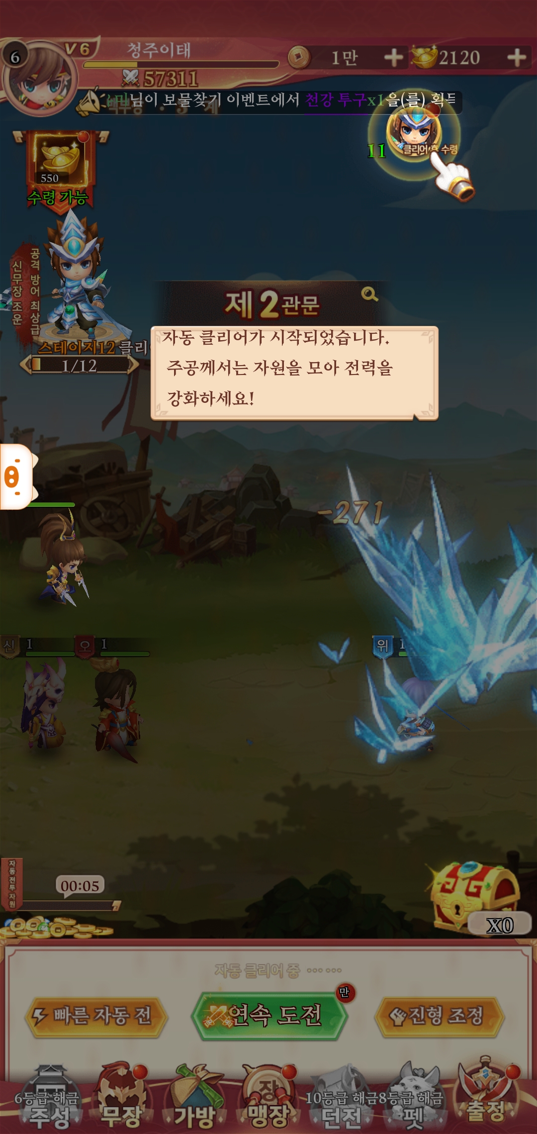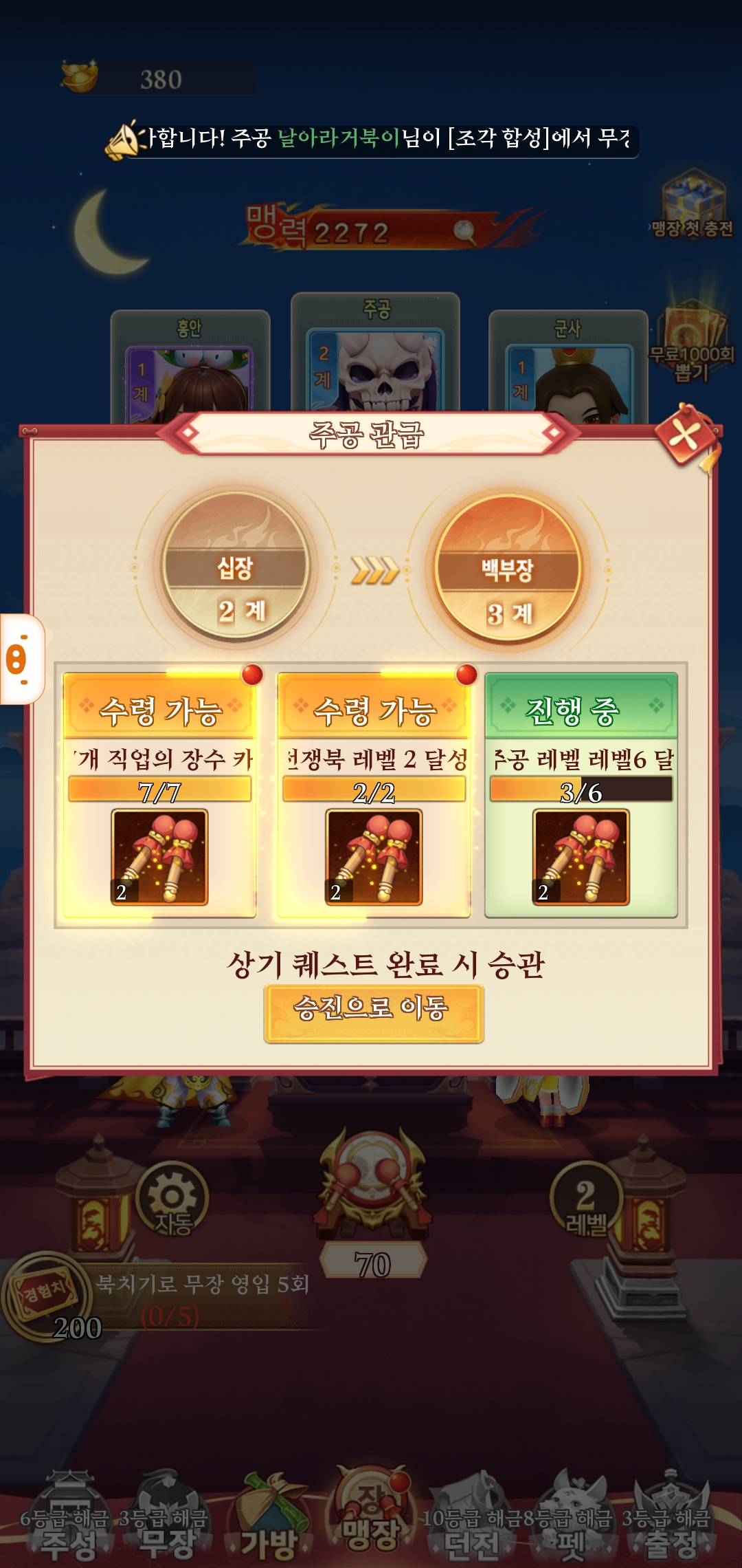 '주공 관급'은 특정 퀘스트를 달성한 후에 '승진으로 이동'을 눌러서 전투를 진행하고 승진을 하게 되는 시스템이다. 보다시피 보상도 받을 수 있다.