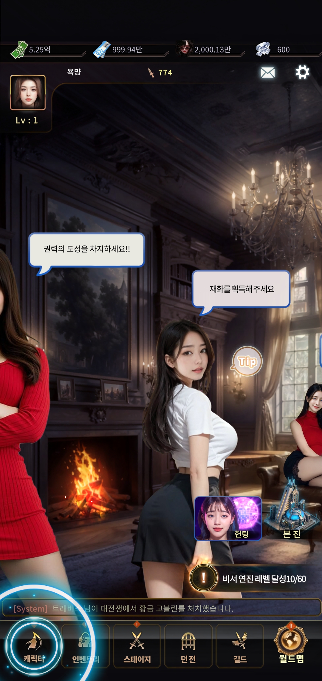메인 임무와 업적 임무 등등 보상을 얻을 수 있는 요소들이 있고 얻은 캐릭터는 메인 화면에 배치시킬 수 있다. 감상용 게임이라고 볼 수 있겠다.