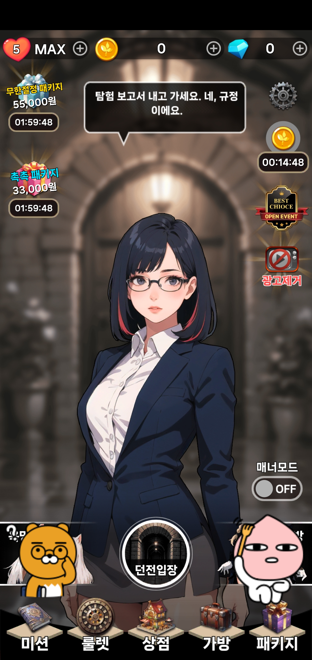 퍼즐 자체가 재밌는 게임이라 퍼즐만 하고 싶으면 매너모드 켜두면 캐릭터가 가려진다.