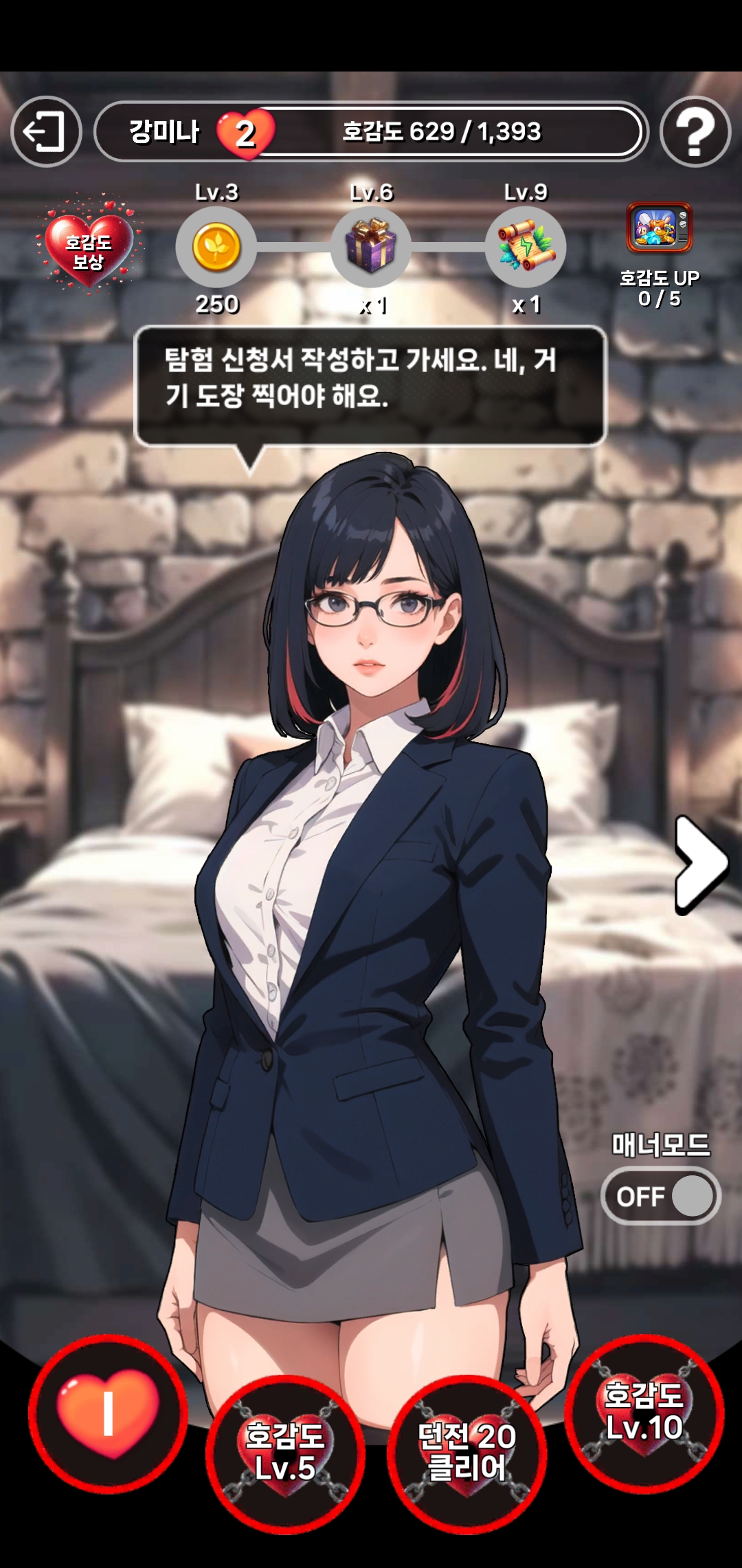 광고 시청을 하면 더 빠르게 올릴 수 있다. 호감도 레벨 달성시마다 일러스트가 해금된다.