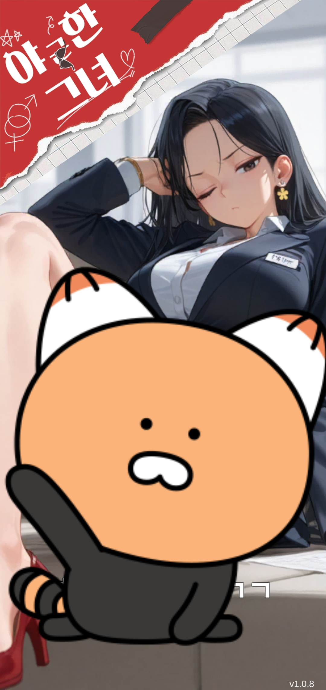 게임 접속 멘트가 "밤새 야근하러 ㄱㄱ"이다. 누르면 게임이 시작되는데 메인 화면에 이미지가 나온다. 신혜린 인턴이 첫번째 캐릭터이고 야근 보고서를 보기 위해 미니 게임이나 수집 게임을 진행하면 된다.