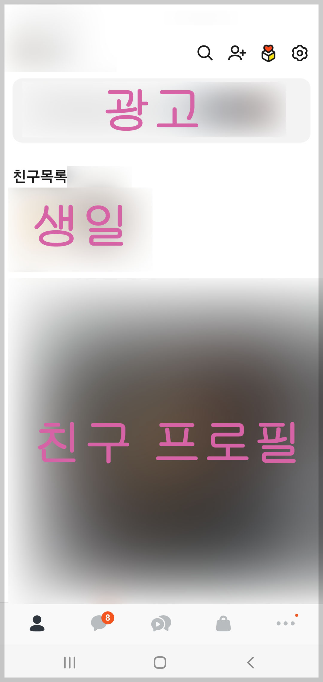 SNS 친화적으로 바뀌었다. 사실상 카톡이 아니라 이제 정말 인스타 같은 SNS가 되었다. 한국식 UI는 불편한 게 아니라 오히려 '편리하다.' 근데 자꾸만 해외 방식을 따라가게 되는데 단순히 그런 글로벌화 때문에만 업데이트를 한 것은 아니고 대표적으로 알려진 내용은 수익창출 때문이라고 알려져 있다.