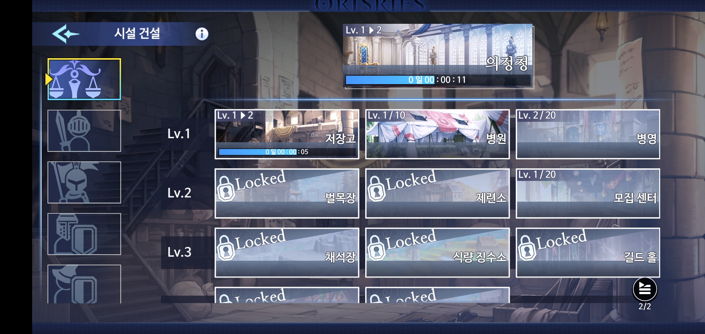 시설 건설 등등 한눈에 진행 상황을 볼 수 있는 페이지가 있고 건설 퀘스트의 경우 조건에 맞춰서 계속 레벨업해주면 되었다. 레벨업하는데 시간이 필요해서 건설 해놓고 다른 행위 하다가 다시 돌아와 건설하고 그런 식이었다. 영웅들은 편성을 해줘야 했다. 영웅마다 호감도도 있어서 선물도 해줘야 하고 장비 4가지 장착 해줘야 했다. 레벨업은 전투를 통해 레벨업하기도 하지만 영웅 정보에서 경험치 재화 사용해 레벨업할 수도 있었다.