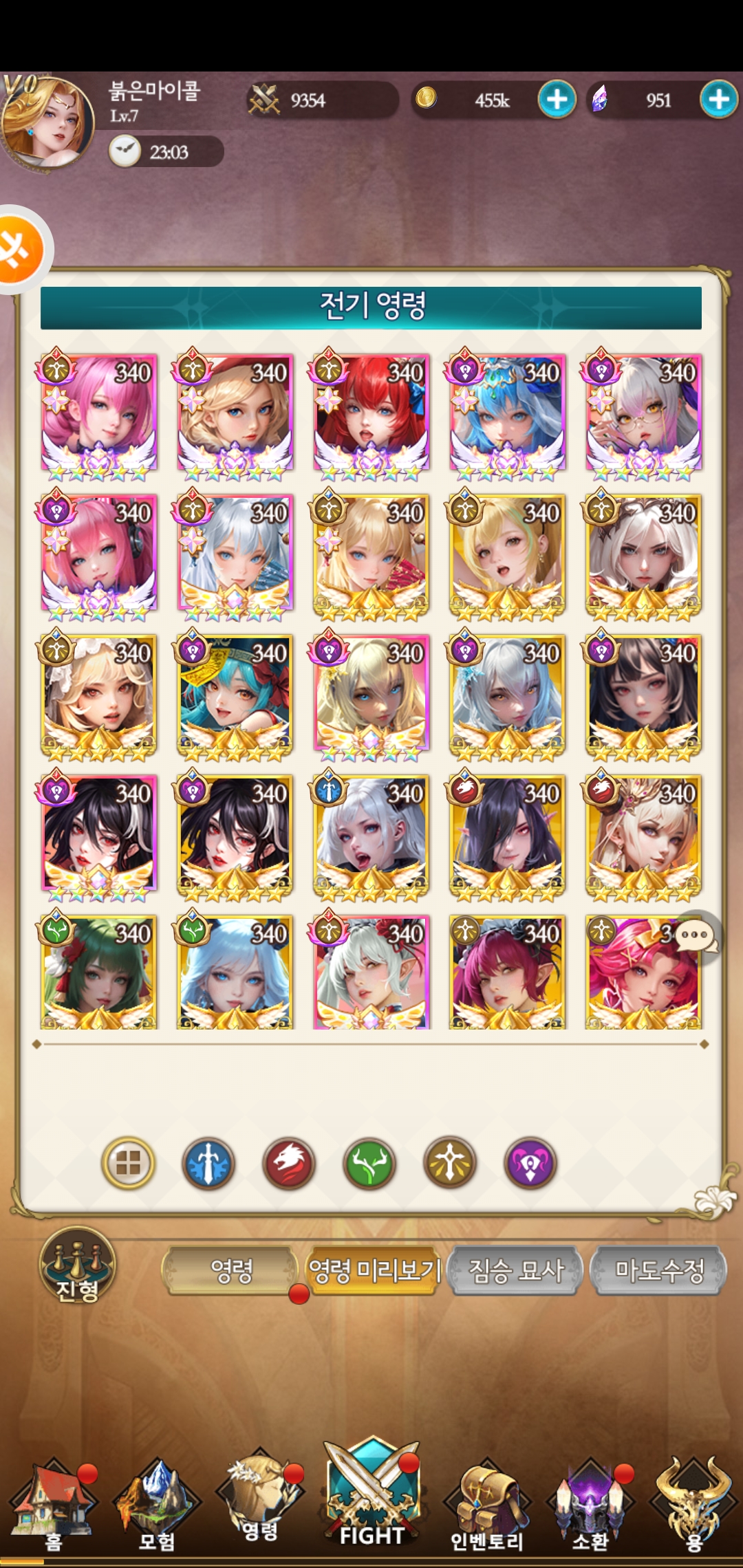 캐릭터가 많아서 볼게 많고 디자인들 나쁘지 않았다. 캐릭터들은 레벨업을 해줘야 하는데 구간마다 진급을 해줘야 한다. 진급에는 진급 재화가 필요하다. 그 외로 장비도 장착하고 뽑기로 캐릭터 모아가지고 승성도 해줘야 한다. 전사, 방어파괴, 콤보처럼 해당 캐릭터의 전투 타입도 간략히 적혀있어서 구분하는 게 어렵지도 않다.