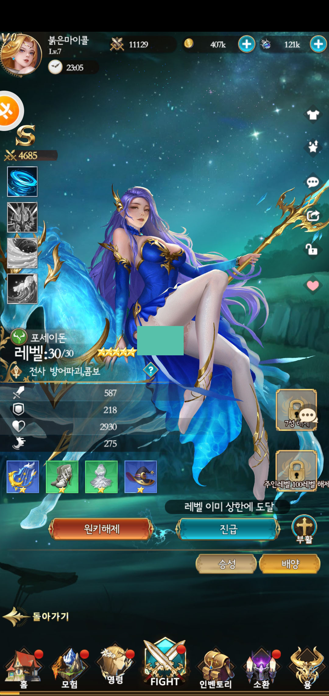처음부터 소환부터 뽑게 해주고 시작을 하는데 보급으로 주는 포세이돈이 초반부 스테이지 등반에 매우 좋은 캐릭터였다. 아예 그냥 거두절미하고 어차피 좀 그쪽 수집형 RPG이기에 바로 그냥 육성하고 수집하라고 지원해 주는 것이 나쁘지 않았다. 보급이 상당히 많다. 물론 이런 류의 모바일게임인 경우 초반부를 아무리 지원해 줘도 막히는 구간에서 갑자기 난이도 급상승하게 되겠지만 그래도 괜찮은 구성인 것 같다.
