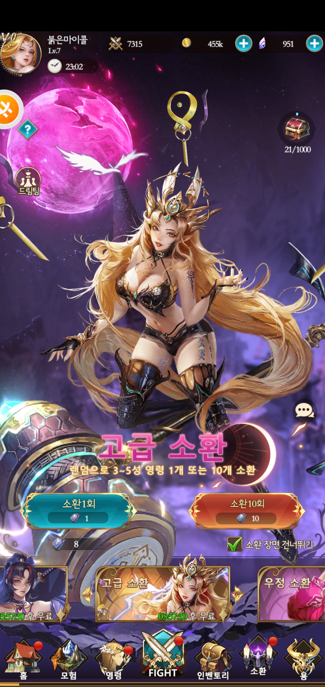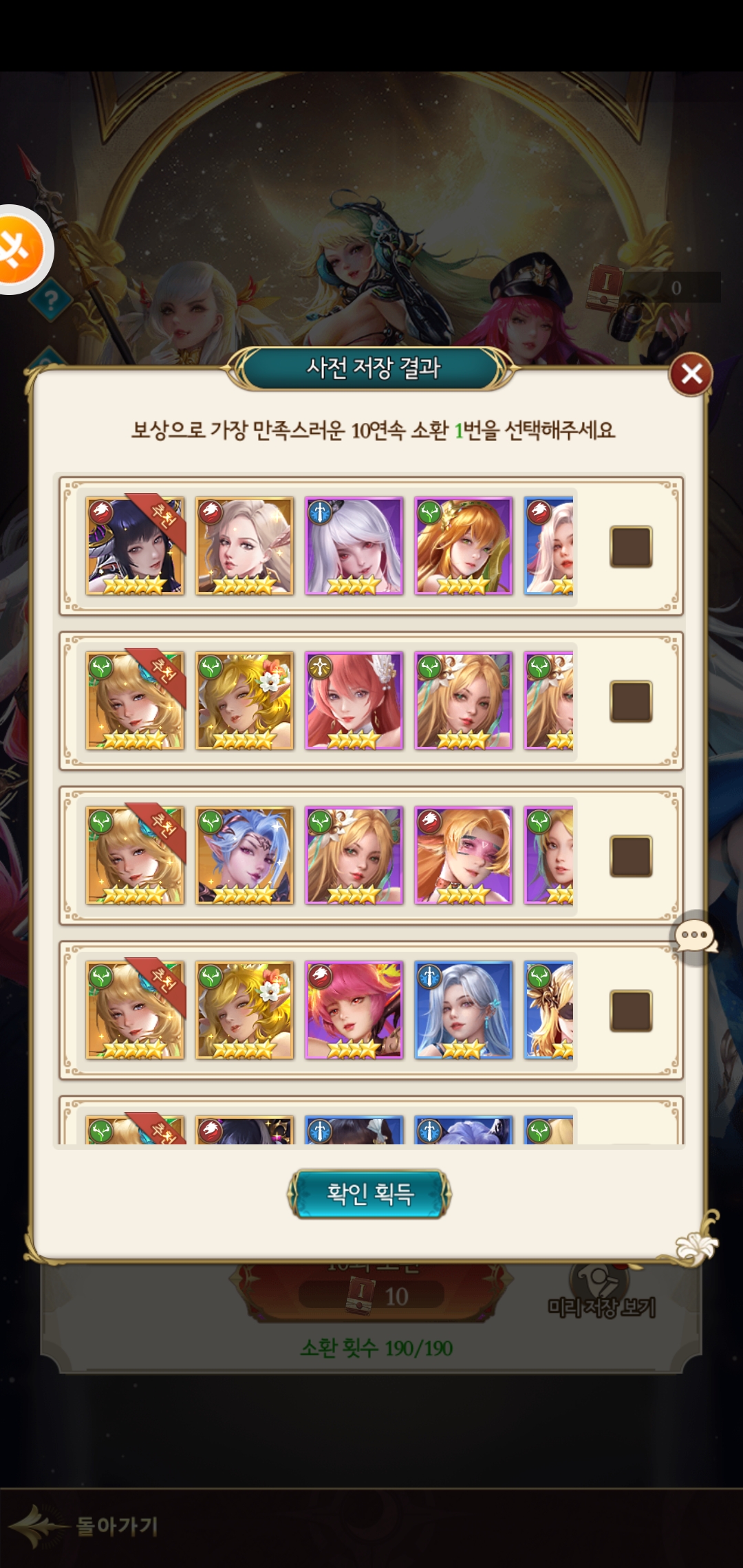 일단 5성 두 개 이상은 갖을 수 있다. 보면은 '추천'이 표시된 캐릭터들이 있어서 추천 캐릭터가 있는 리스트로 선택하면 될 것이다. 이후부터는 일반 소환, 고급 소환, 우정 소환으로 얻게 된다. 사실상 고급 소환을 노려야 한다.