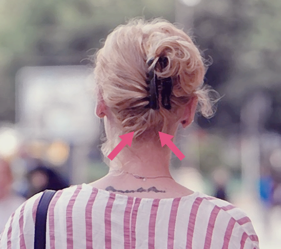위치는 역시 어렵지 않다. 다만, 사진만으로는 이해가 안될 수 있지만, 사진을 참고하면서 양손으로 목덜미를 만져봤을 때 양쪽에 움푹 페인 곳이 있을 것이다. 거기가 풍지혈이다.