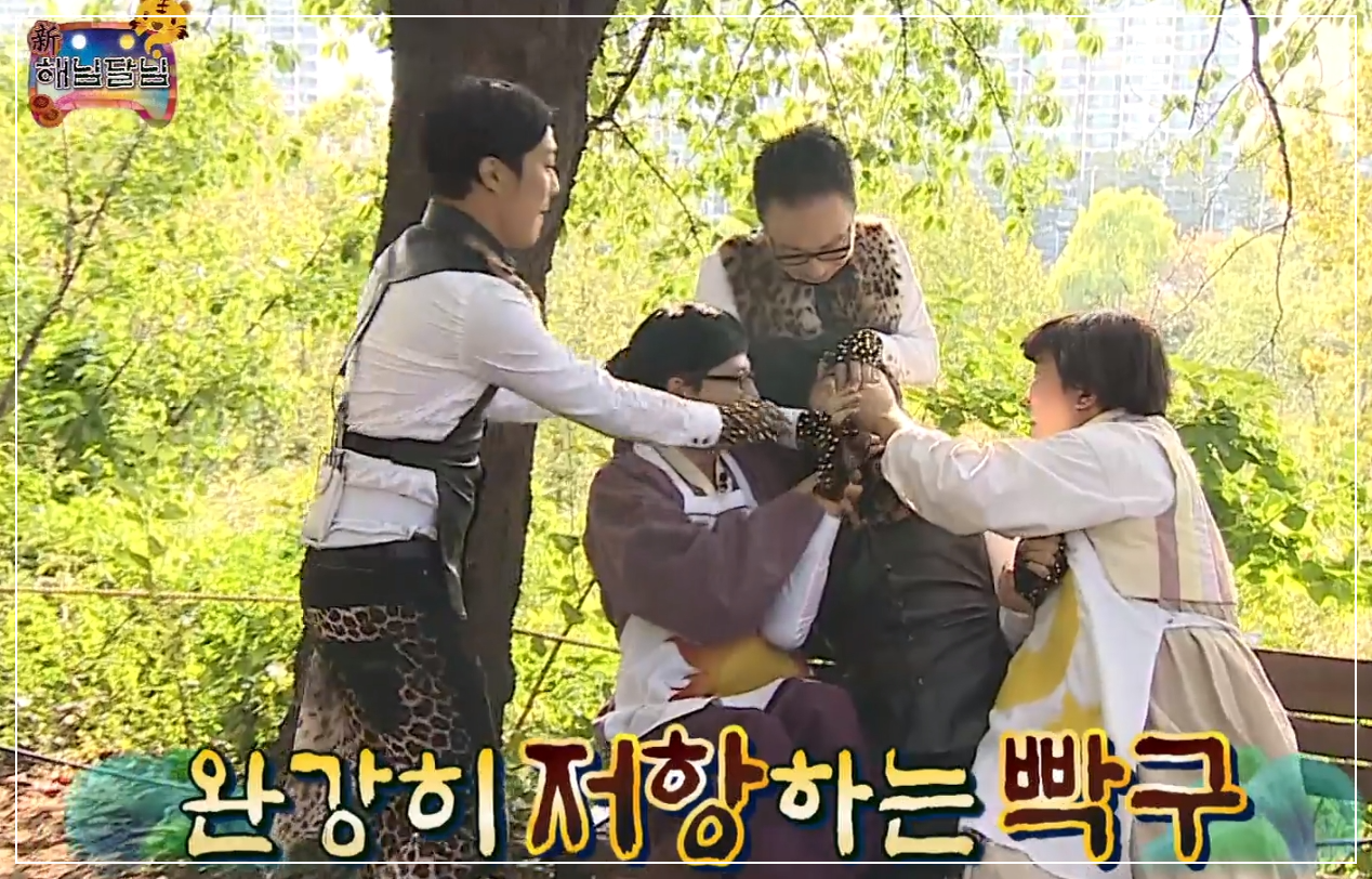 노홍철은 계속해서 해님달님에게 어필한다. 시청자들도 호랑이들이 정체가 무엇인지는 모르는 상태로 진행되기 때문에 같이 추리를 하게 되는데 정말로 이 당시 본방사수 했었지만 그 당시 기억이 생생한데 이때 노홍철의 말과 액션은 그동안의 모습과는 달랐다. 이건 뭐 아래에서 더 이야기를 하고...