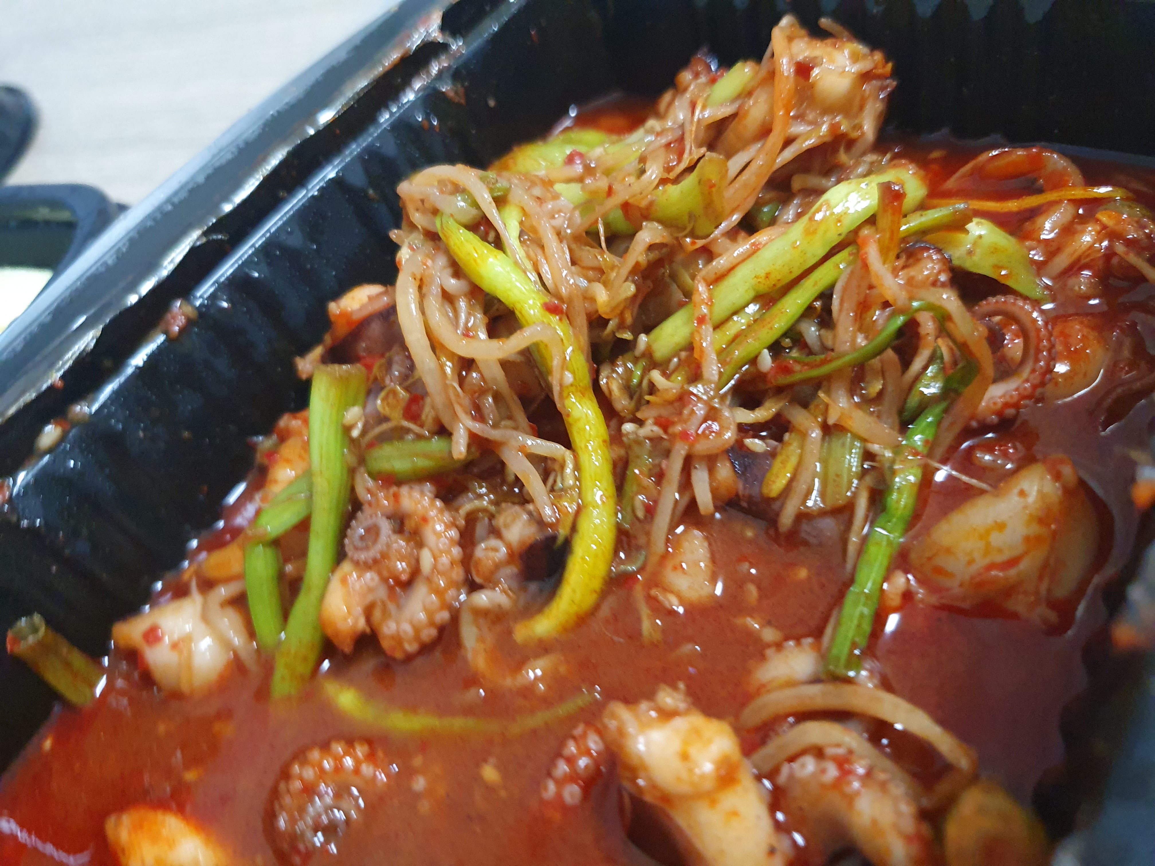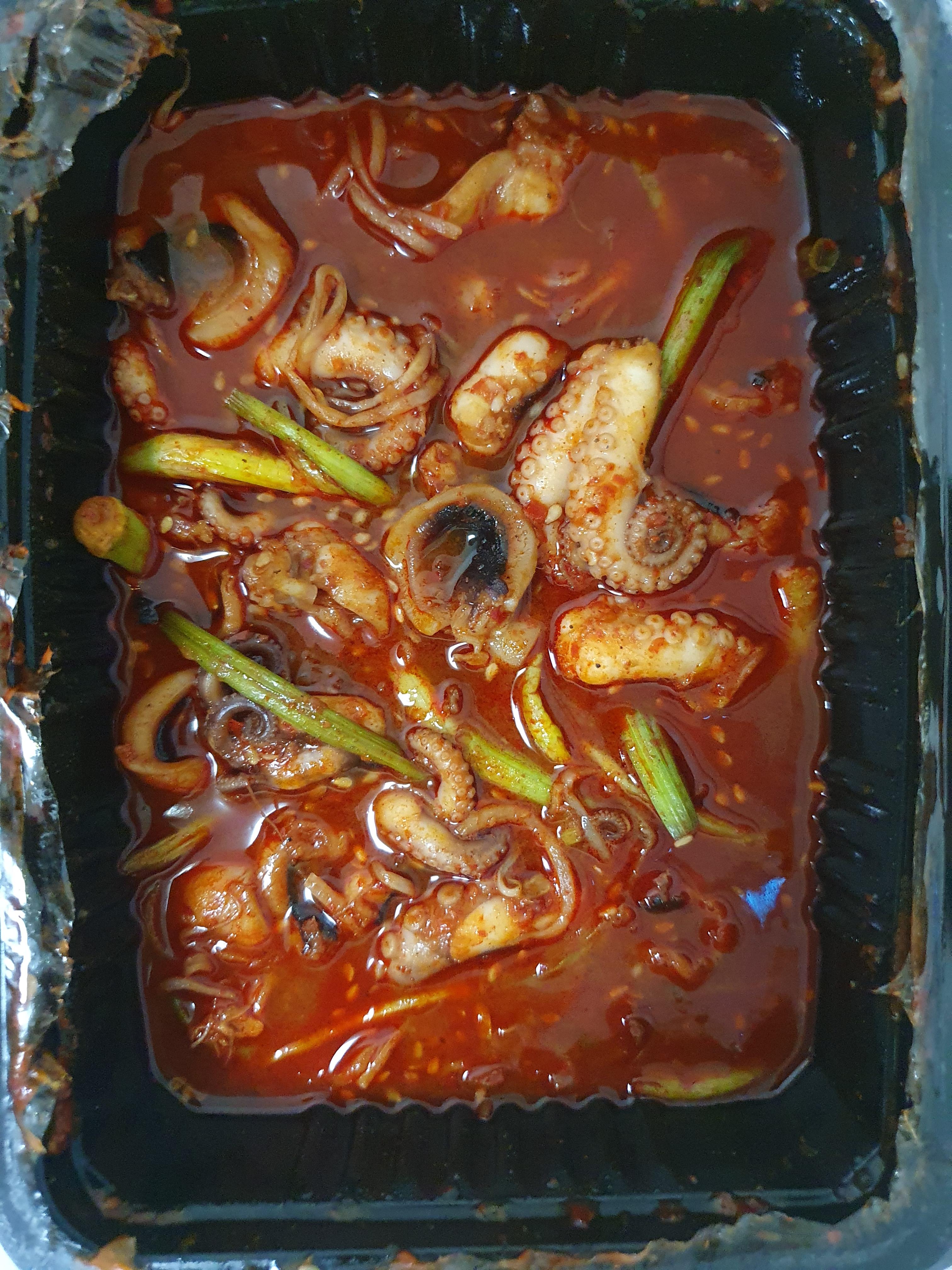 쭈꾸미의 상태는 좋았다. 탱글하고 적당히 조리해서 탱글함과 신선함이 느껴지는 상태로 배달이 온다. 수저로 양념까지 같이 떠서 먹으면 맛이 더 강해진다.