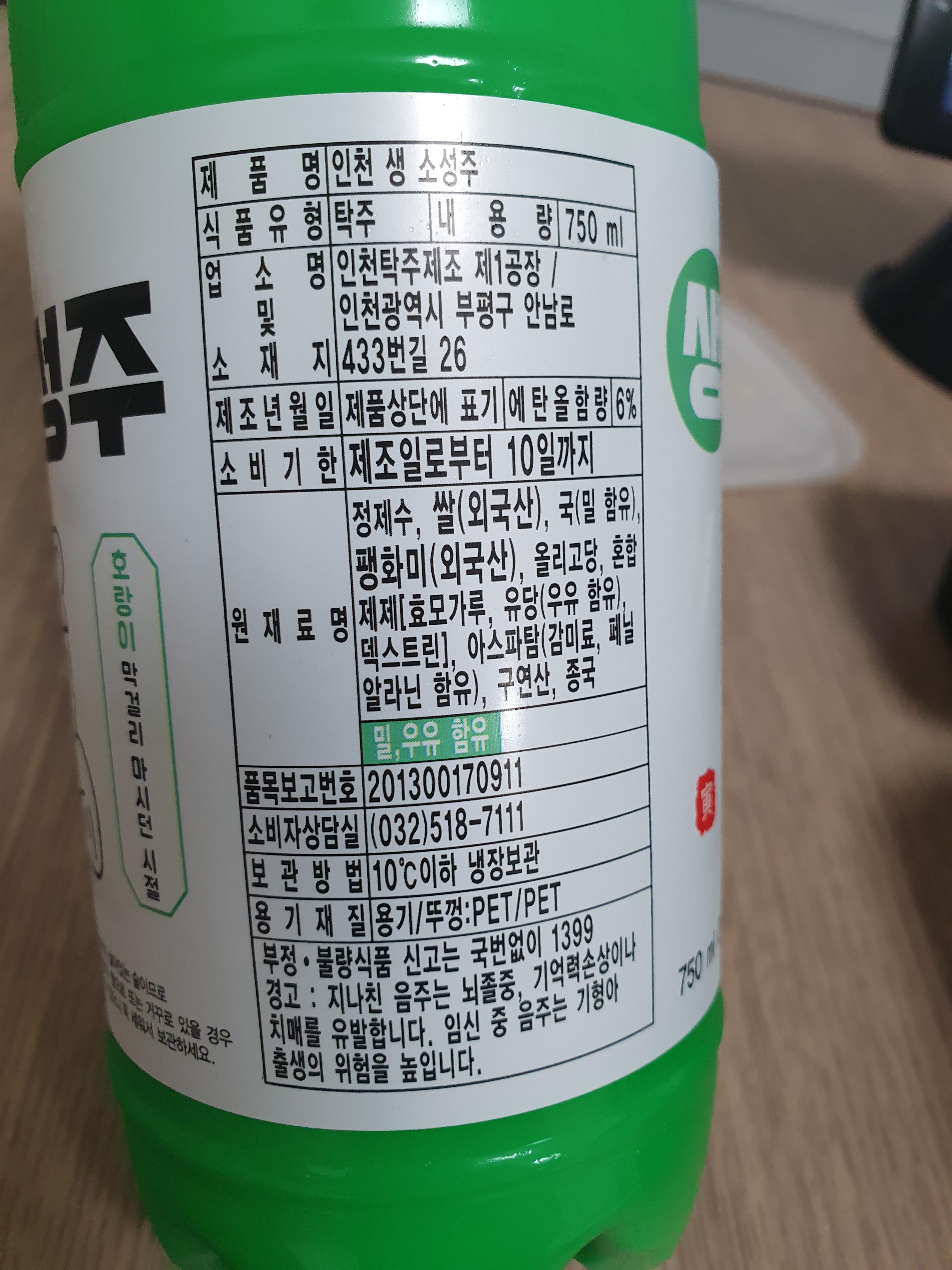 어쨌거나 기타 성분들은 위 사진을 참고하고 소성주의 도수는 6%이다. 그래도 한병 다 마시면 꽤 술기운이 올라온다. 물론 뭐 주량이야 사람마다 다르니까 의미없는 얘기지만...