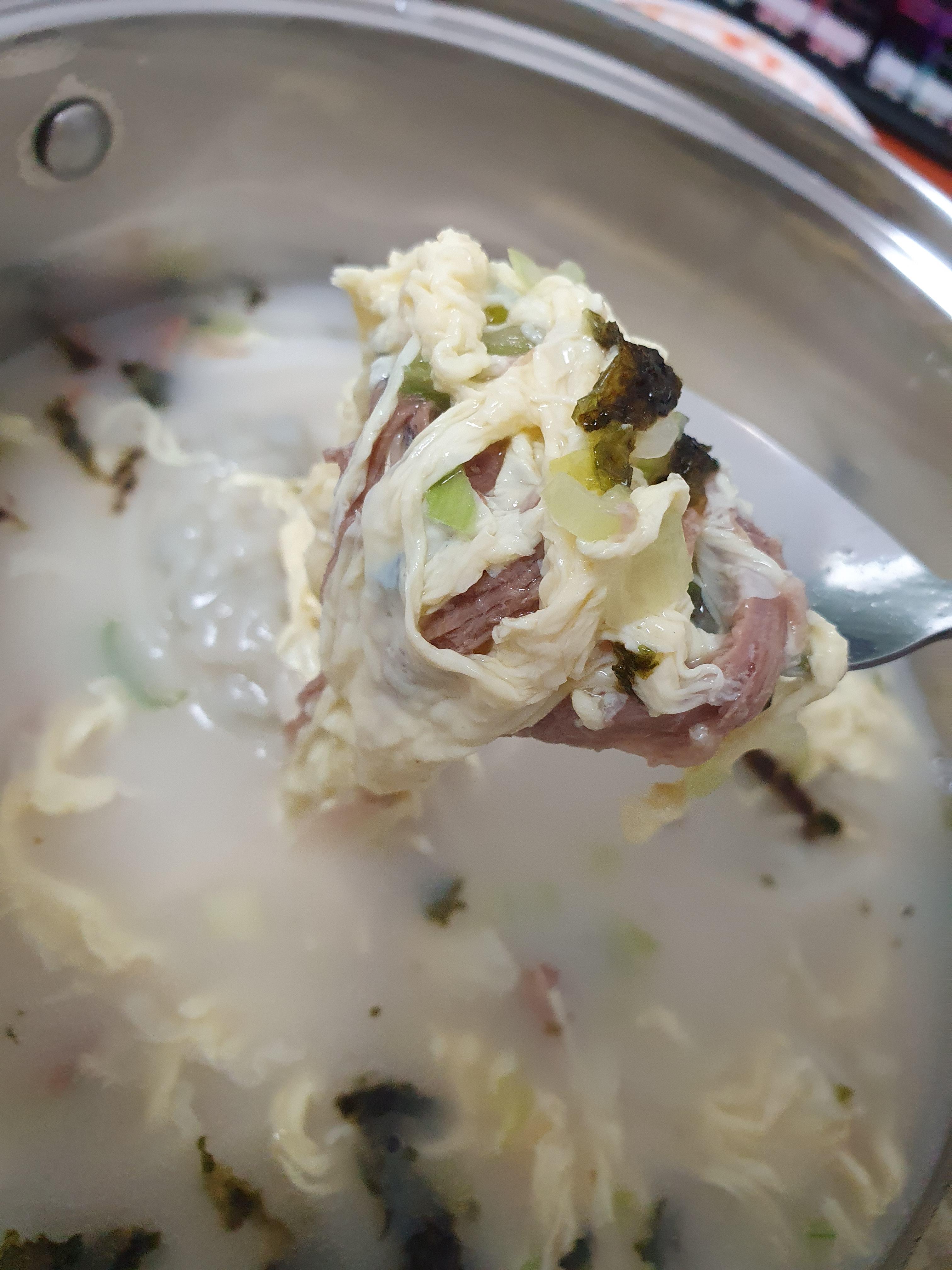 기본 베이스는 아무래도 육개장 사골인 것 같다. 보다시피 육개장에도 들어가는 고기 고명이 동일하게 들어간다.
