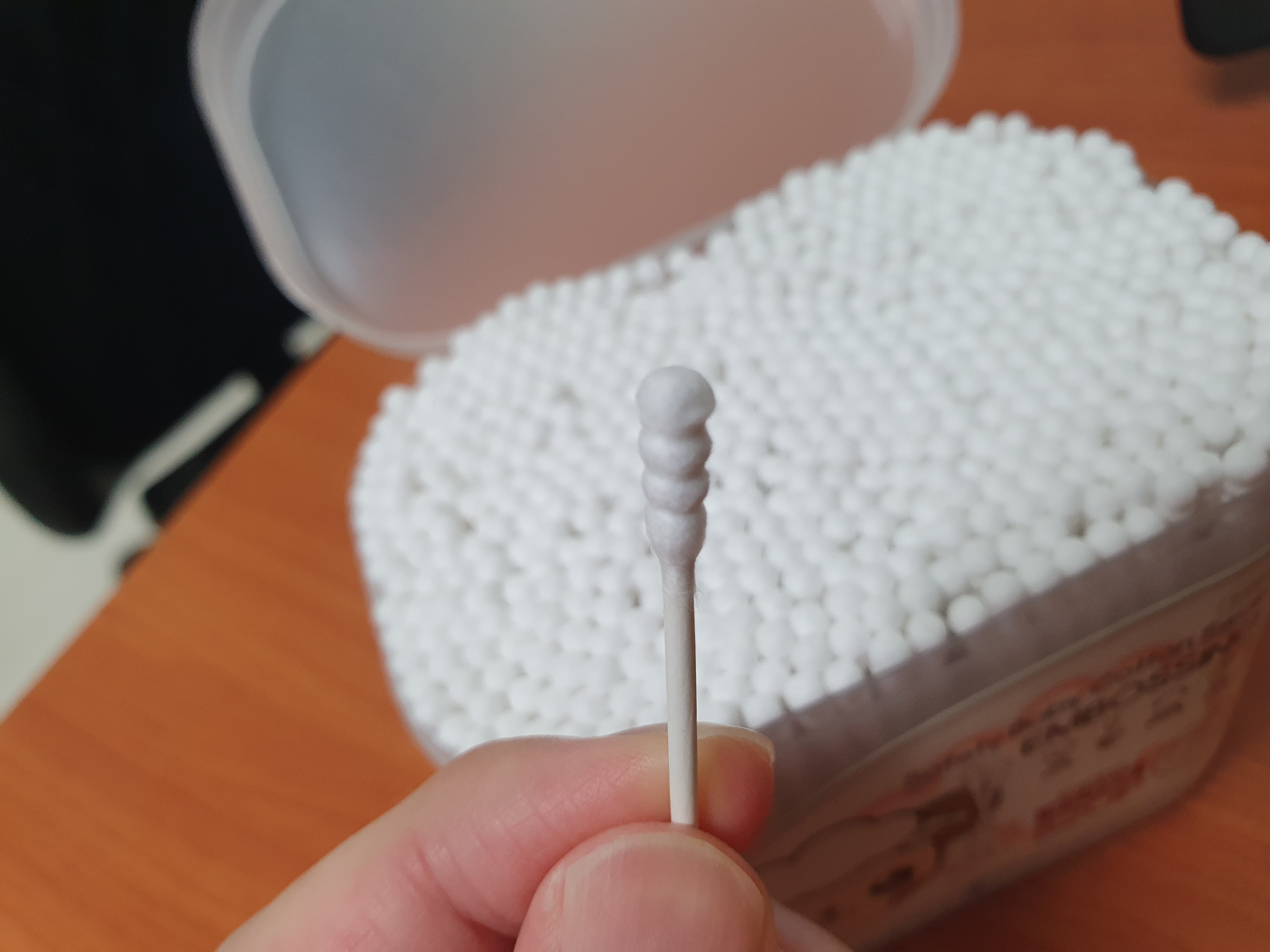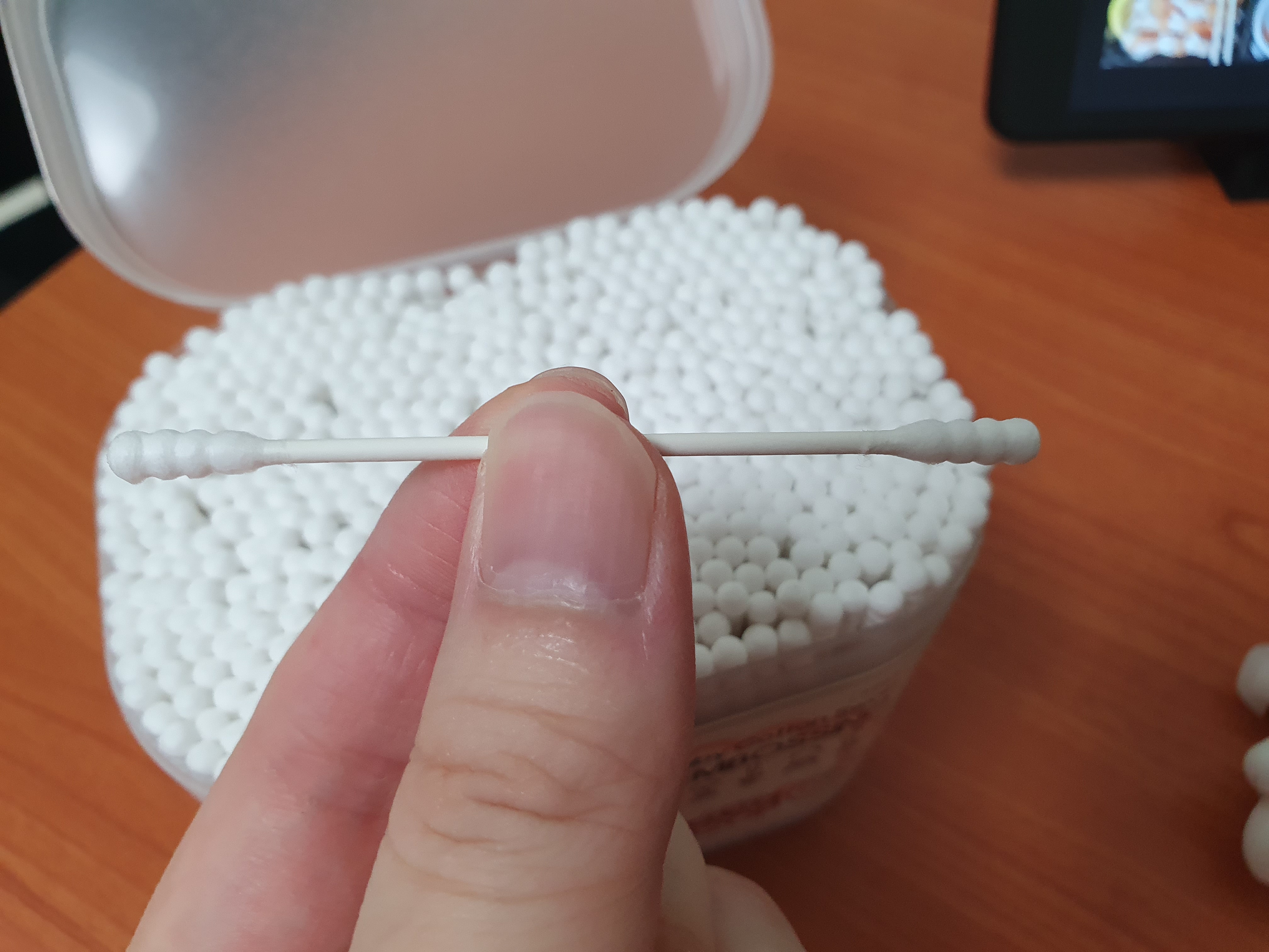 이게 이제 좀 일반적인 면봉하고는 모양새도 다르고 솜도 두툼하지 않고 얇은데 중간중간 홈이 파져 있어서 좋은 점도 있고 얇아서 좋은 점들도 있었다. 물론 그렇기 때문에 단점인 부분들도 있다.