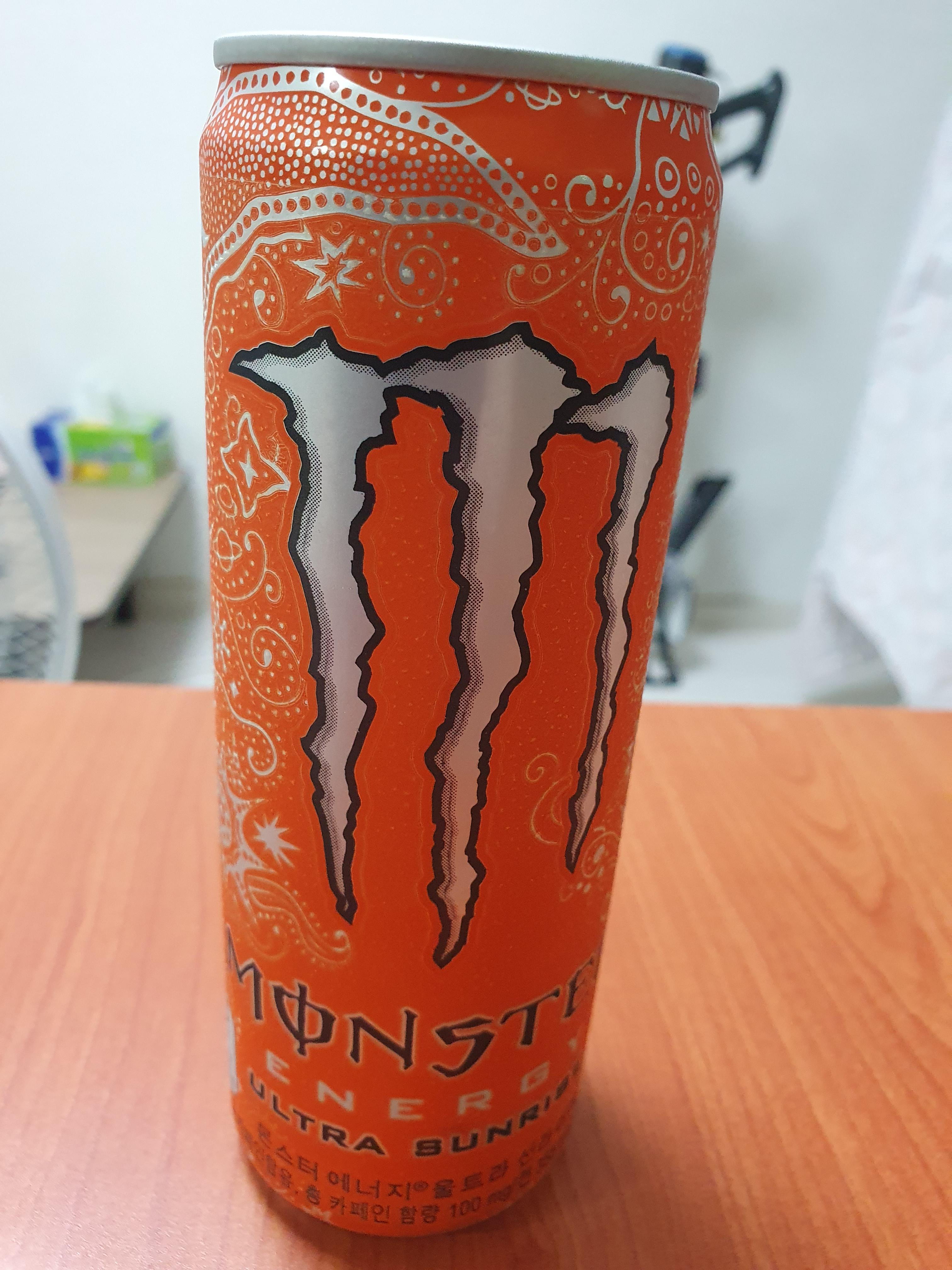 몬스터 에너지의 카페인은 100mg가 항상 들어가 있는데 칼로리는 버전마다 좀 차이가 있지만, '울트라'여서 10칼로리인 것 같다. 그 하얀색 버전하고 똑같은 듯?