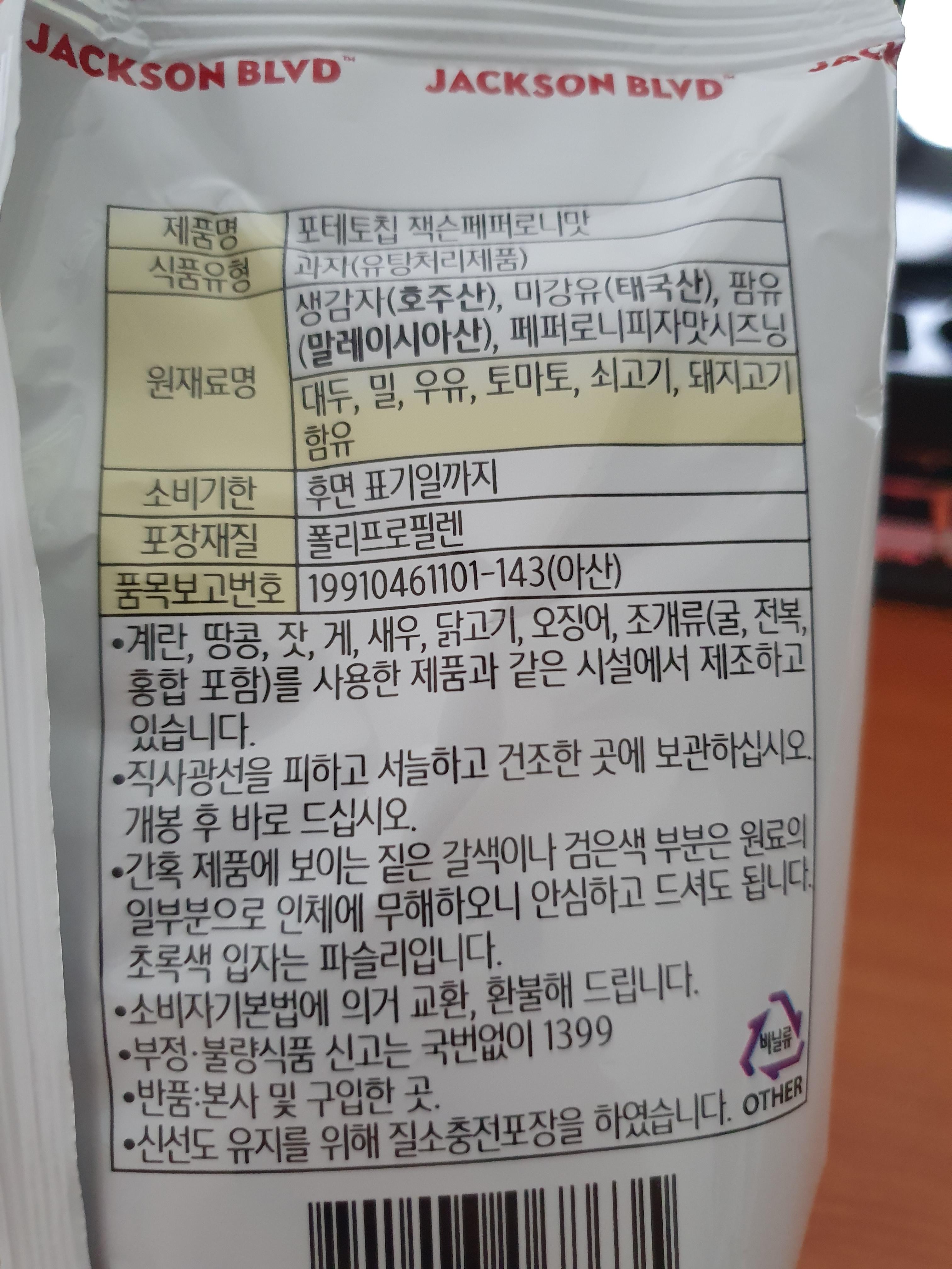 포테토칩과 인기맛집(잭슨)의 콜라보라고 한다.