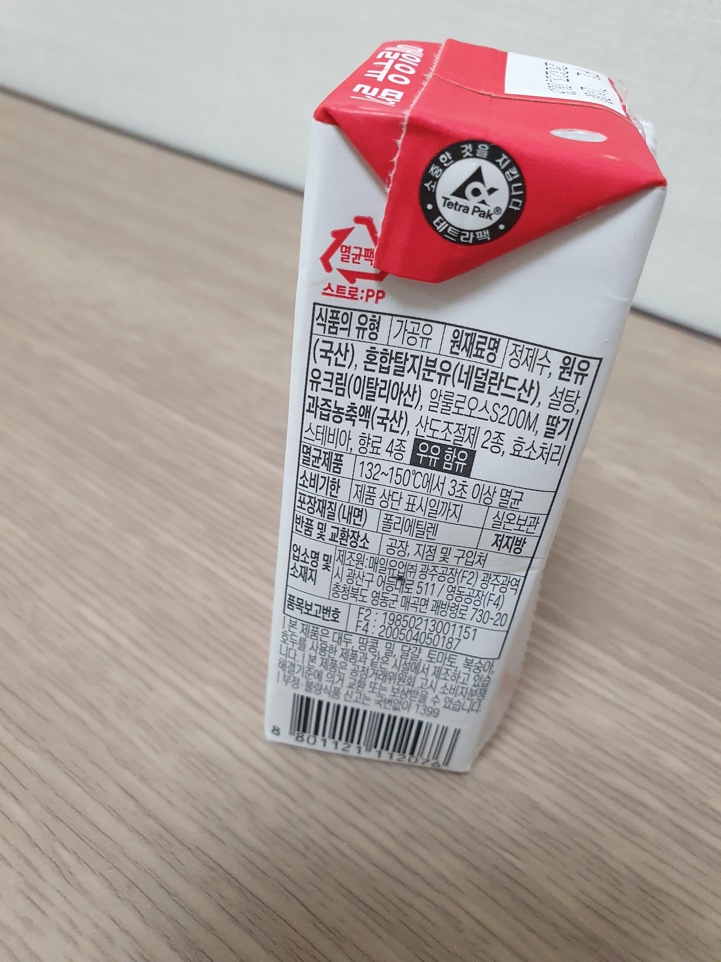 확실히 멸균 처리가 되어서 그런지 모르겠지만 매일우유의 딸기 멸균은 좀 더 시원하고 깔끔한 맛이다. 맛이 더 진하진 않지만 좀더 깔끔한 맛을 원한다면 매일우유 딸기가 딱 맞을 듯싶다.