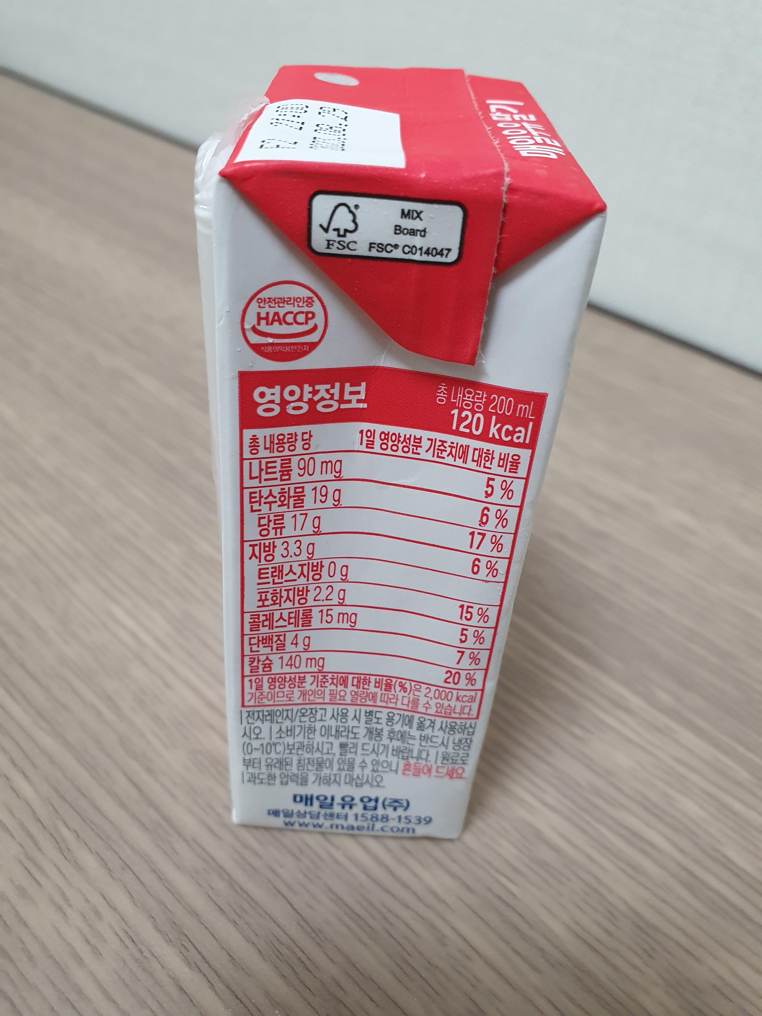 아.... 우유 가격 올랐지... 알고 있었는데도 새삼 또 놀랍네...-_-a 와... 이제 200ml 우유가 천원이구만... 크아... 아무튼 카롤리는 120칼로리이다. 역시 우유야~