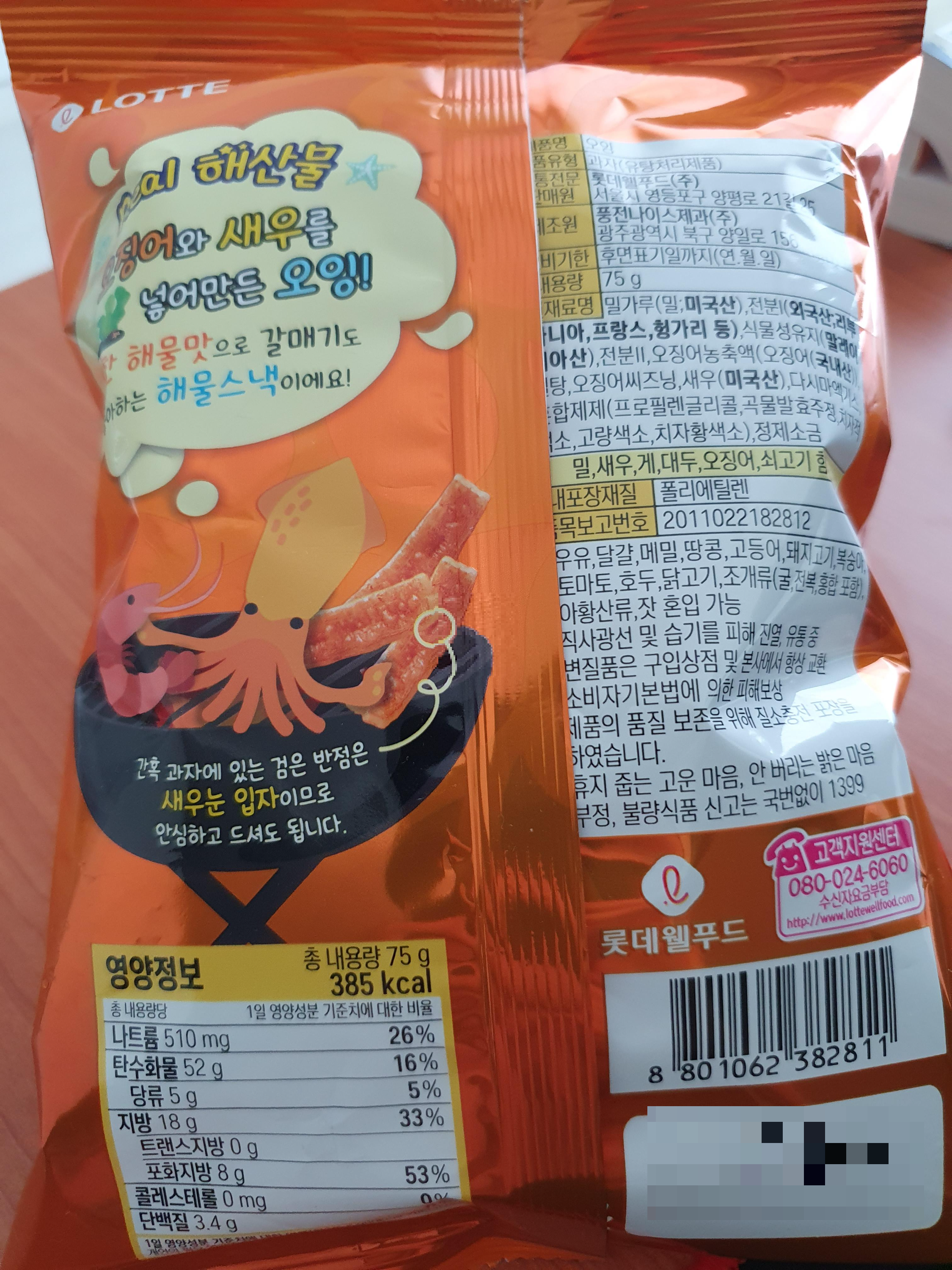 근데 심지어 롯데에서 포장지 디자인에 '갈매기'를 언급해놨네... 오징어와 새우의 맛은 너무 확실해서 이 맛을 즐기고 싶다면 진짜 '오잉'이 제격일 것이다.
