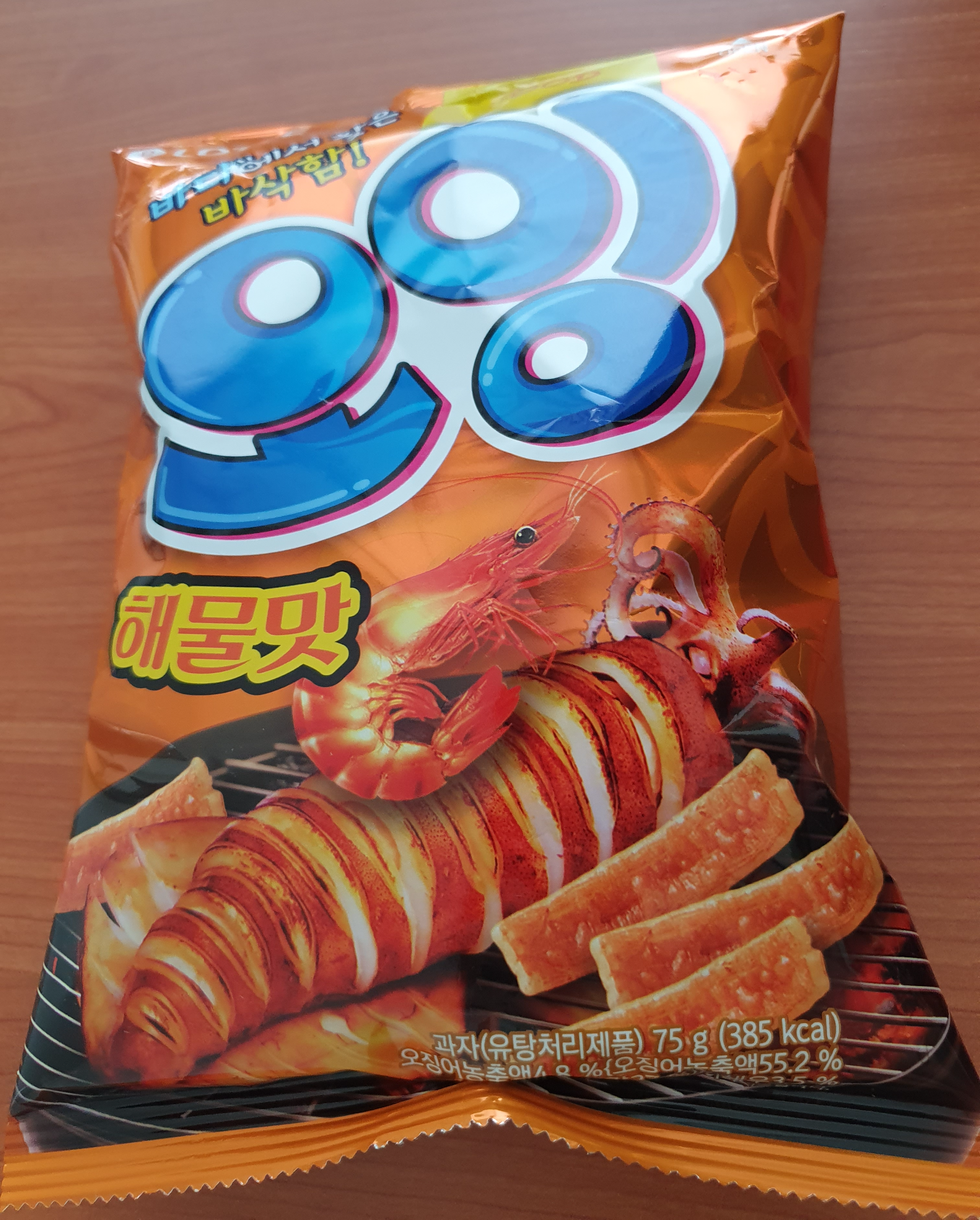 롯데의 '오잉'이란 과자인데 오래된 과자라서 아는 사람들이 많을 것이다. 해물맛 버전이 오리지널로 알고 있고 다른 버전도 있는 걸로 안다.