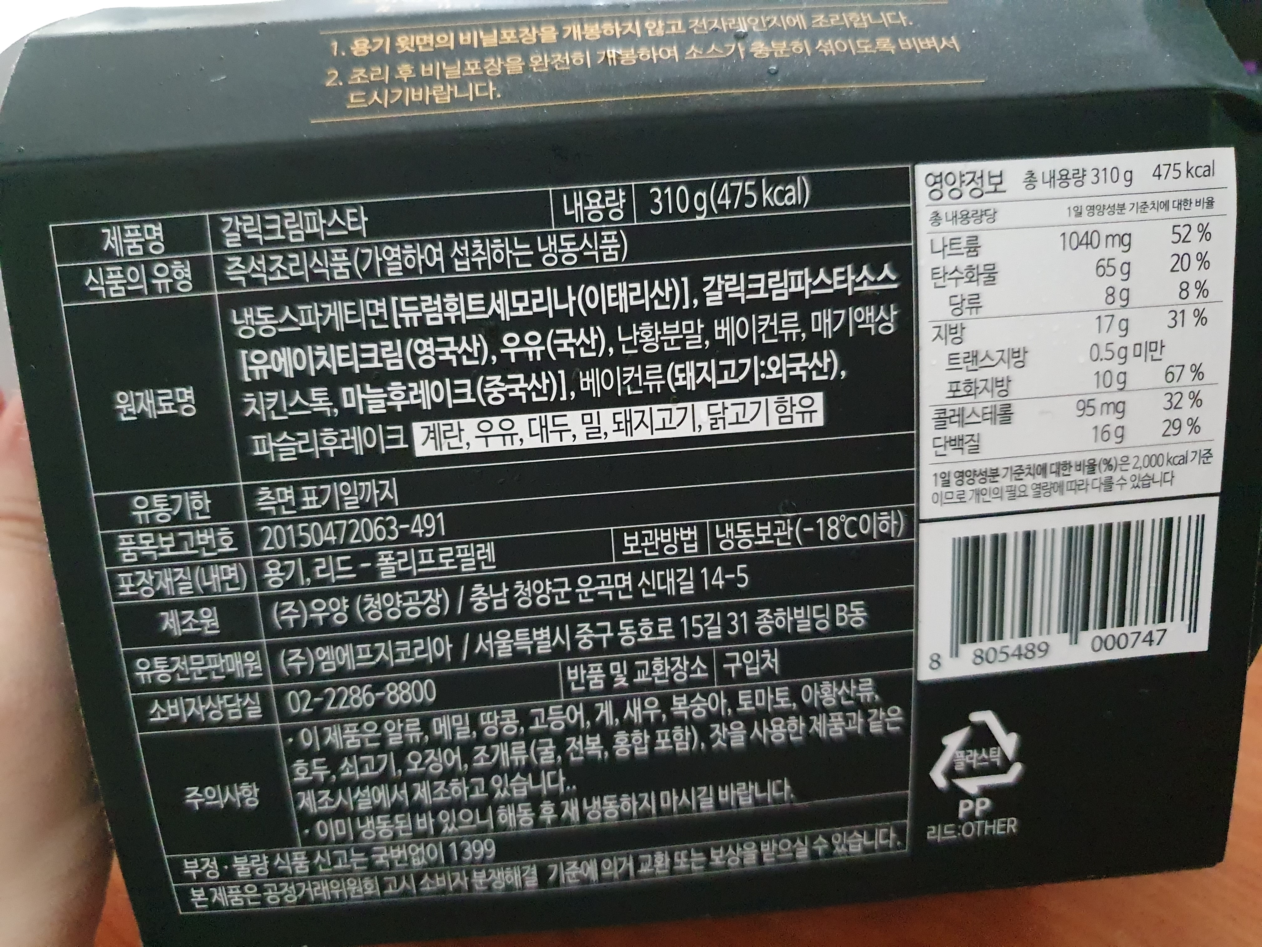 흠... 웬만해선 유통되는 크림 파스타 괜찮게 먹는데 이거는 좀 맛없게 하는 배달음식점의 크림파스타 맛이었다. 크흑... 혹평은 미안하지만 솔직하게 말하자면 그렇다...