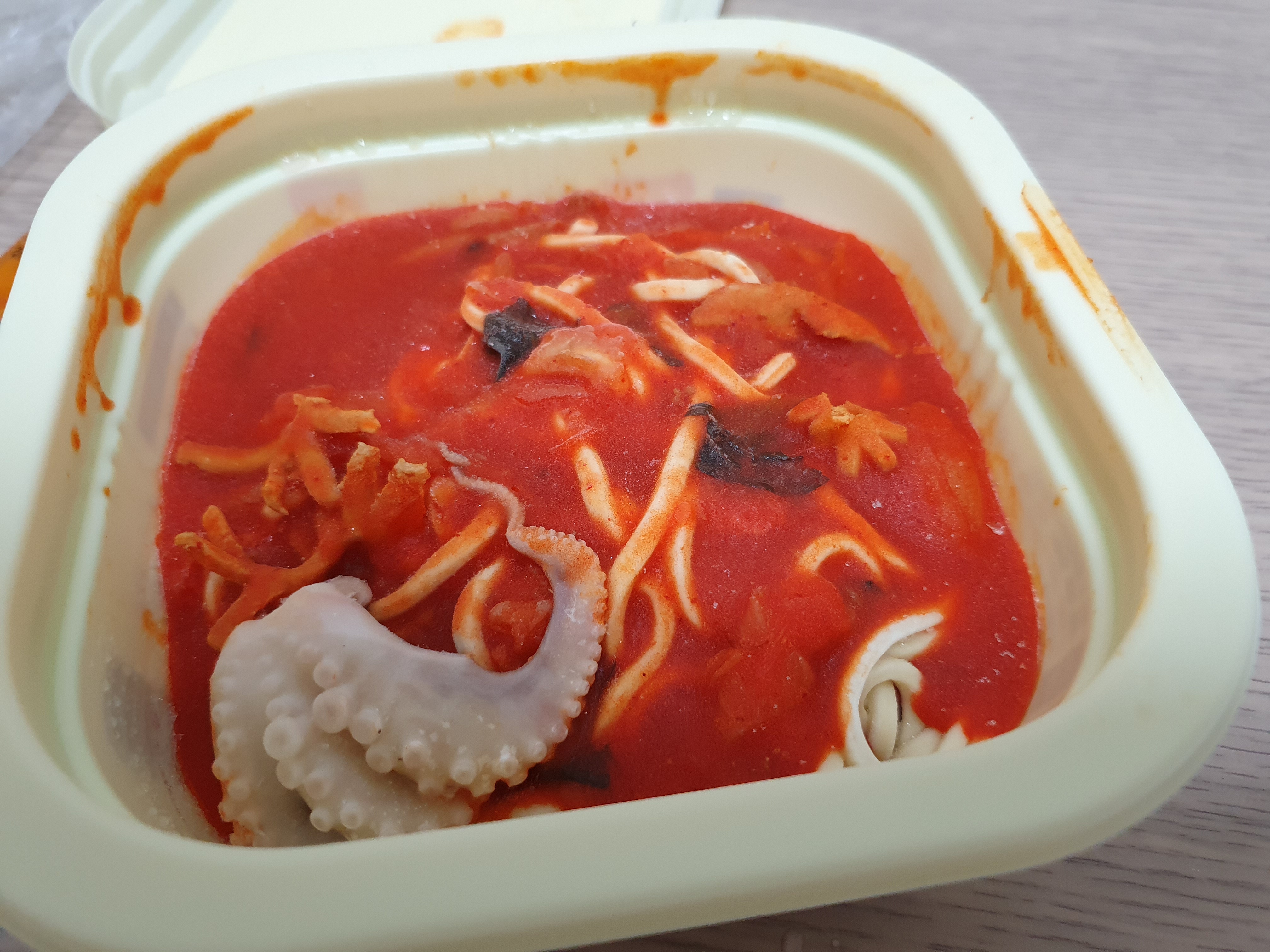 재밌는 건 제품 중에 쭈꾸미가 2.7% 들어있고 소스에 오징어 5.6%가 함유되어있다고 한다. 해서 해물의 향은 과하지 않게 적당히 알잘딱으로 난다.