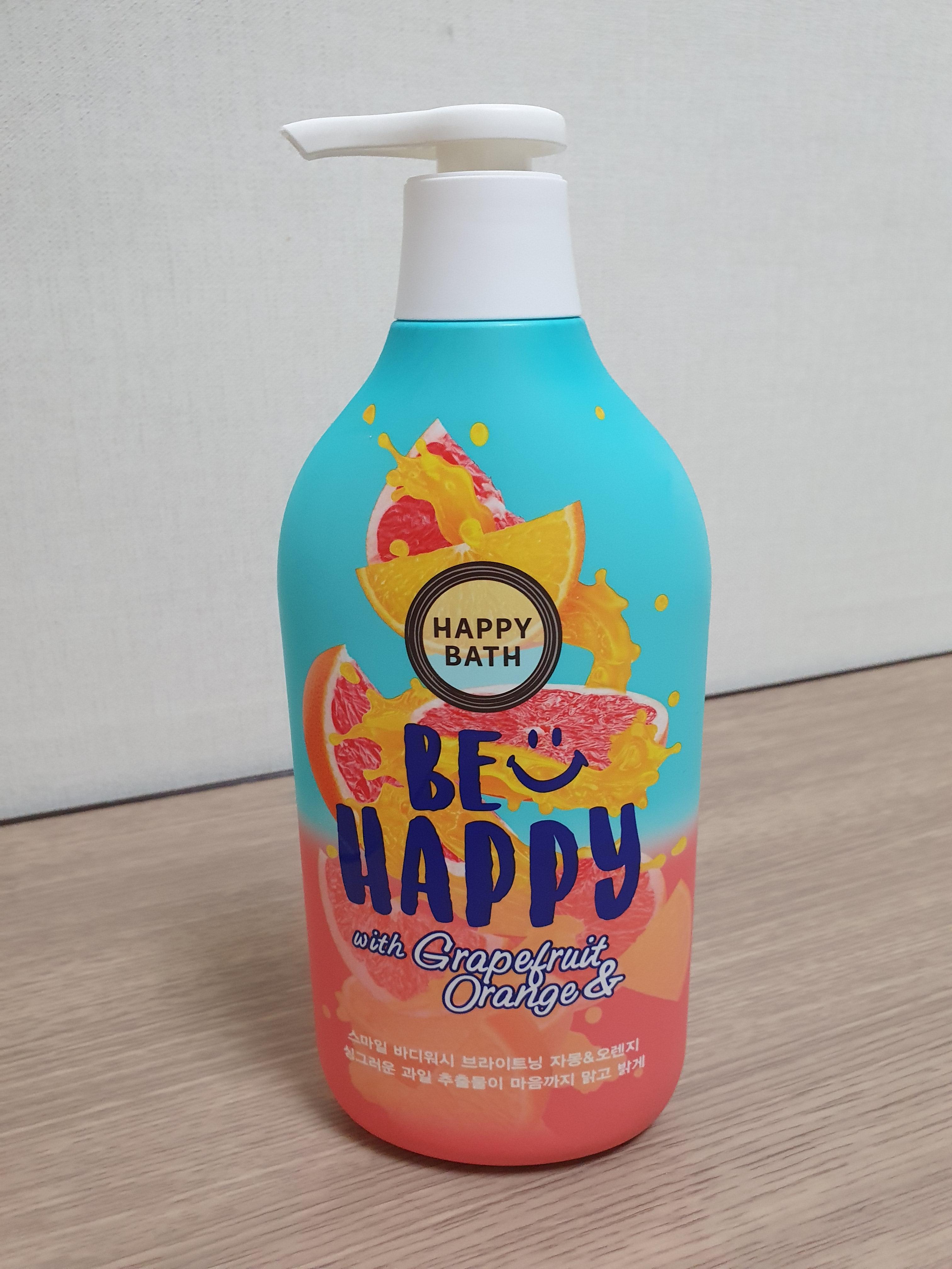명칭은 해피바스 스마일 바디워시 브라이트닝 자몽 앤 오렌지인데 간단히 그냥 자몽 앤 오렌지라고 말하겠다.