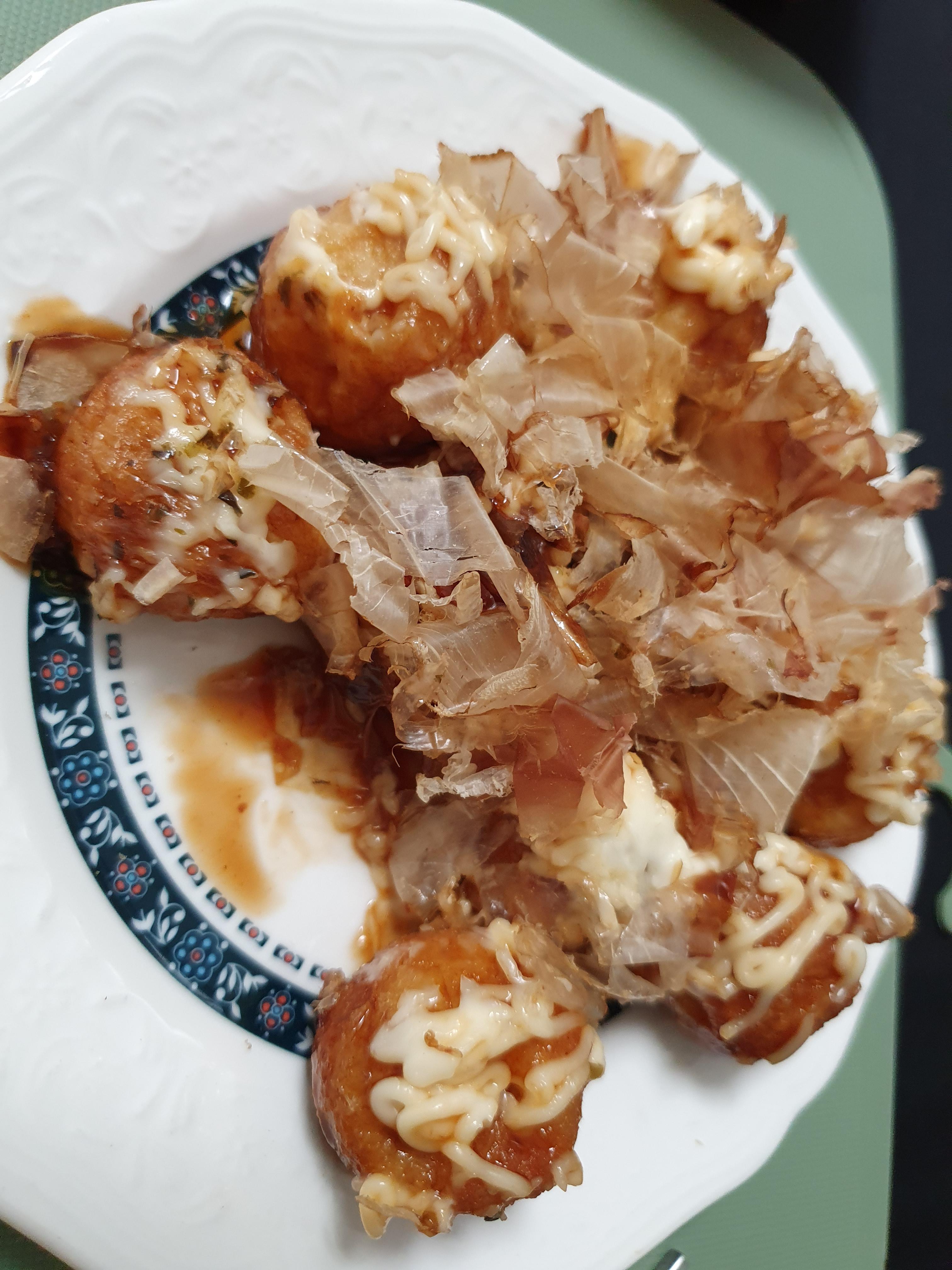 남은 건 냉동실에 넣어놨다가 전자레인지 돌려 먹었다. 먹물 타코야끼는 다 못 먹었다.