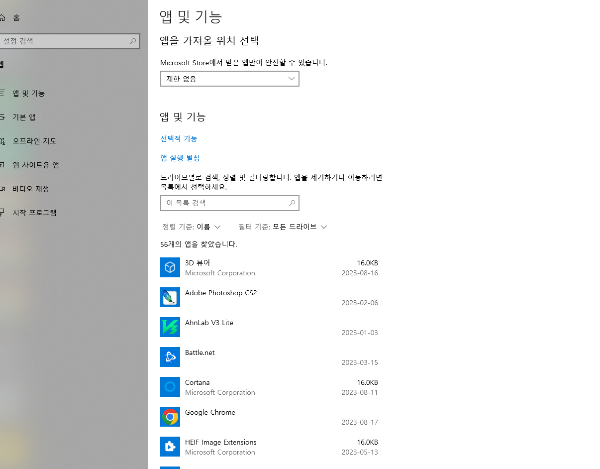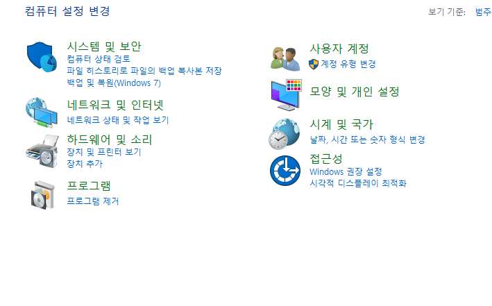 요즘 다 윈도우10 이상 이용 중일 거다. 그래서 제어판을 다른 경로로 들어가야 한다. 가장 쉬운 건 그냥 검색해 보면 된다.