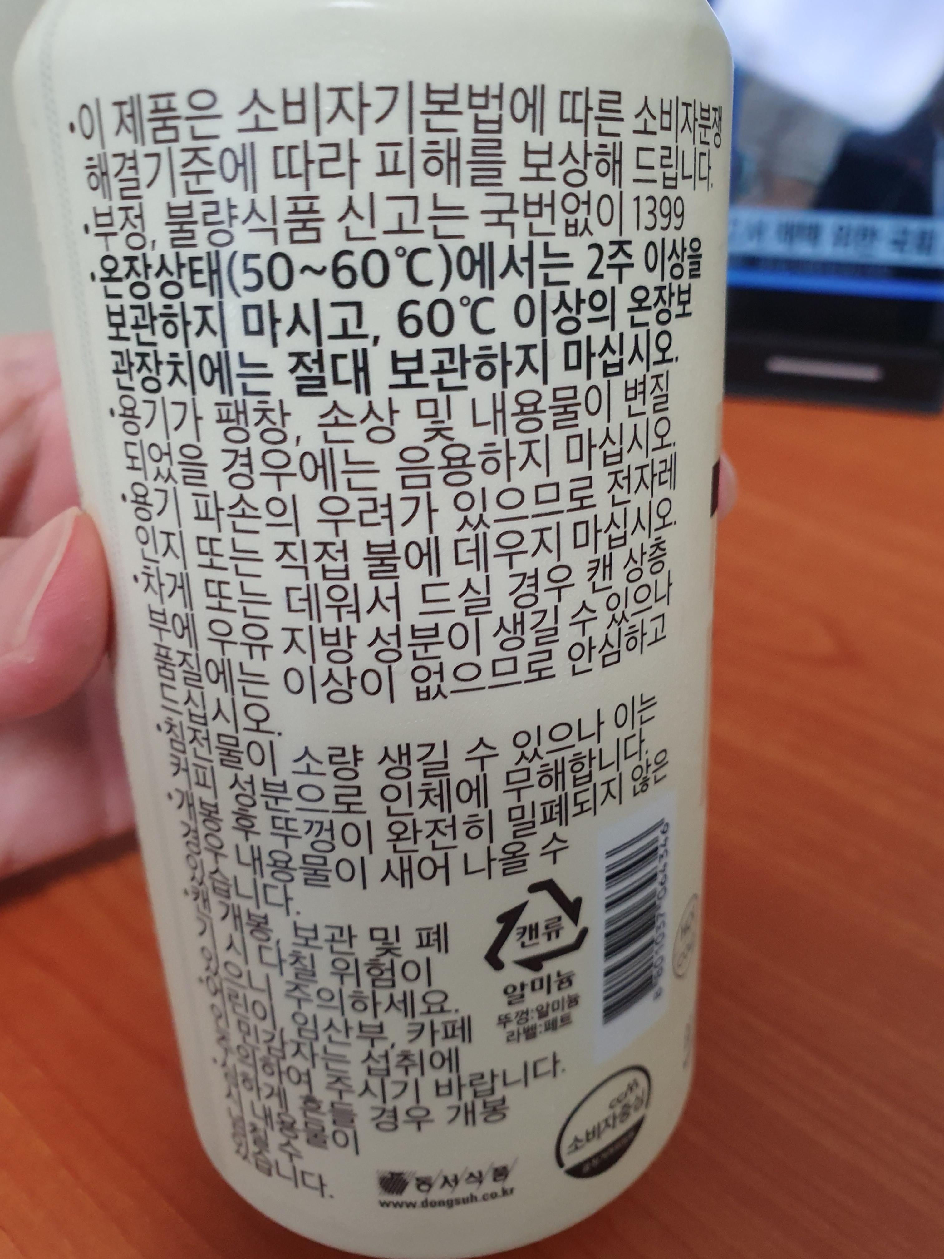 양은 많지만 이거 두 캔 마셔도 하루 권장 카페인 섭취량이 오바되지 않는다. 개꿀.