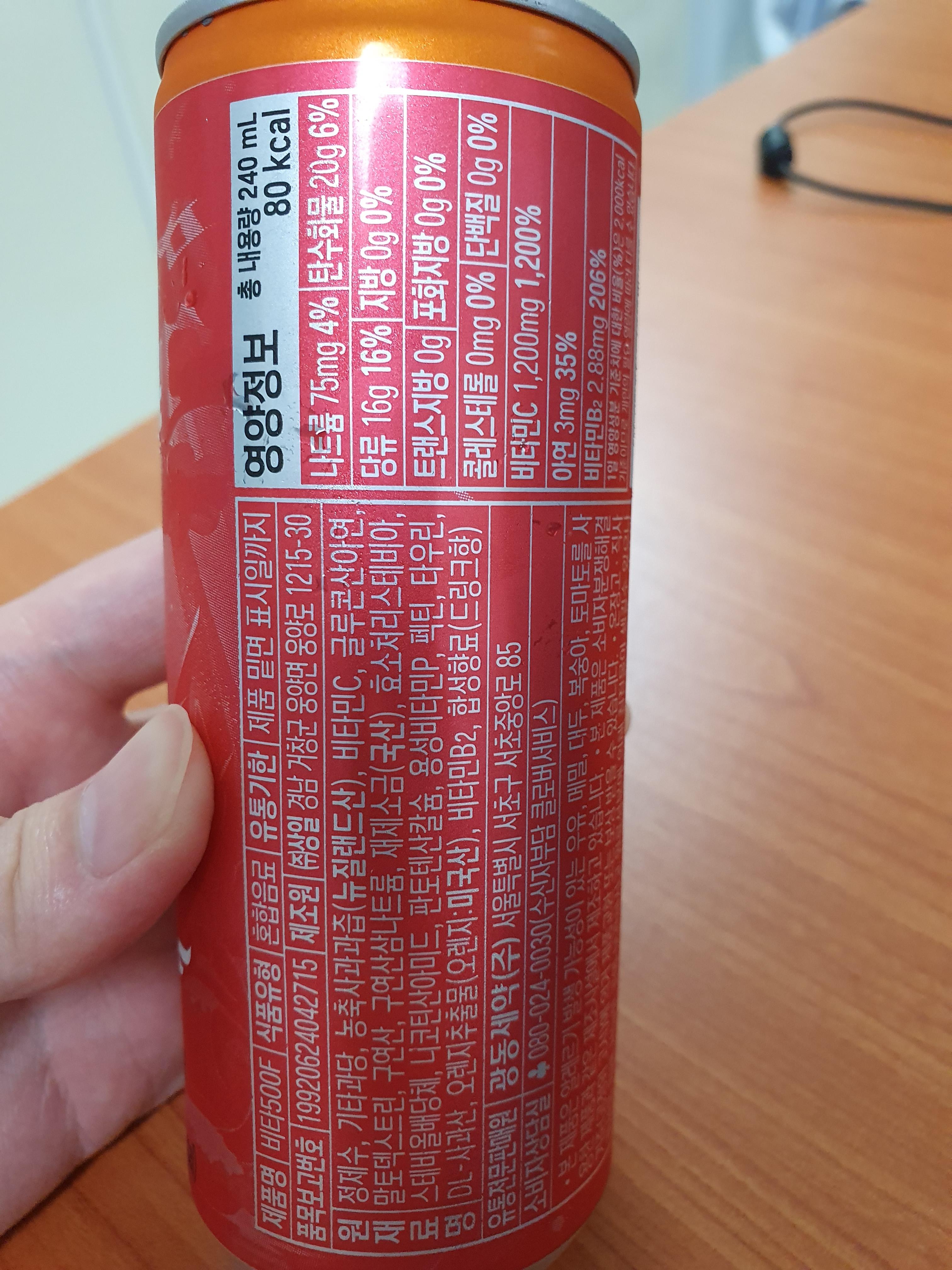 비타민씨 함량은 1200mg였다. 일반적인 성인 기준 비타민씨의 하루 권장량은 2000mg까지이다. 뭐든 과하면 몸에 이상이 온다. 때문에 하루 권장량은 꼭 지켜야 한다. 해서 이거 한 캔 마시면 사실상 그 이상으로는 비타민C를 챙겨 먹지 않아도 된다고 보면 된다. 왜냐면 비타민C는 많은 음식과 섭취 식품들에 포함되어 있다. 그러나 비타민C는 그만큼 많이 빠져나가는 비타민이기도 하다. 정리하자면 2000mg 이상은 넘어가지 않도록 해야 하는 것은 맞다. 때문에 비타500F는 한 캔으로 제한해야 한다. 앞서 말한 대로 많이 빠져나가기도 하지만, 그만큼 또 많이 섭취되는 게 비타민C이기 때문에 쉽게 과도하게 비타민씨를 섭취할 가능성이 높기 때문이다. 비타500F의 칼로리는 240ml에 80칼로리이다.