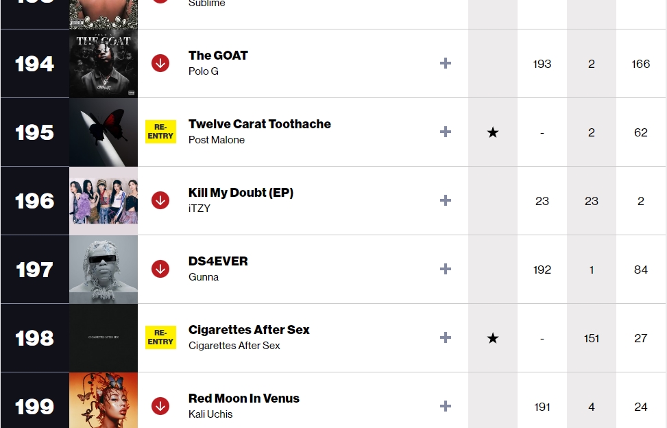 엔하이픈의 다크 블러드 앨범이 180위를 기록 중이다. 솔직하게 말해서 스트레이키즈처럼 새삼 놀라는 그룹이 엔하이픈이다. 엔하이픈의 독특한 분위기를 좋아하기도 하고 좋아하는 곡들도 있는데 해외에서의 인기가 항상 내가 생각하는 이상으로 보인다.