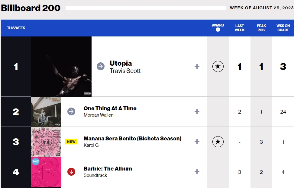 몇 주전에 확인했던 것보다는 빠져있지만 여전히 빌보드 메인 차트인 빌보드 핫백과 200에 케이팝이 차트인하고 있었다. 여기에는 정국, 뉴진스, 스트레이키즈, 엔하이픈 그리고 '그' 그룹까지 여전히 순위를 기록 중인데 지속성 부분에서 놀라운 부분도 있다. 2023년 08월 26일 기준으로 둘러보는 빌보드 차트.