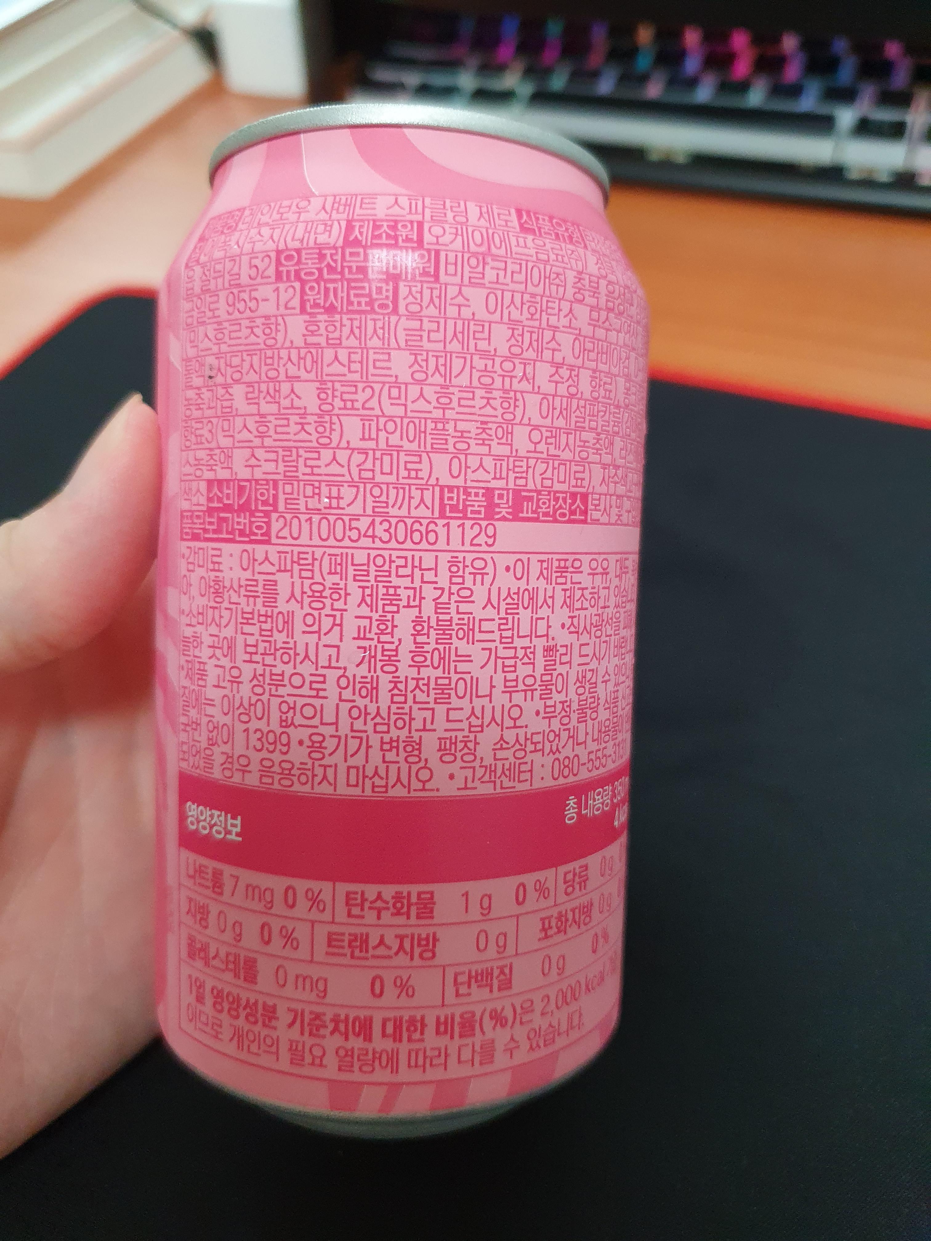 내가 구입한 건, '레인보우 샤베트 스파클링 제로'이다. 특이점이 아무래도 맛을 더 살리고 싶었던 것인지, 0칼로리는 아니다. 그래서 불만족이냐... 아니! 더 만족스럽다. 부족할 수 있는 맛을 채워줬고 자일리톨의 맛이 전혀 없는 기깔나는 제로 탄산이었다.