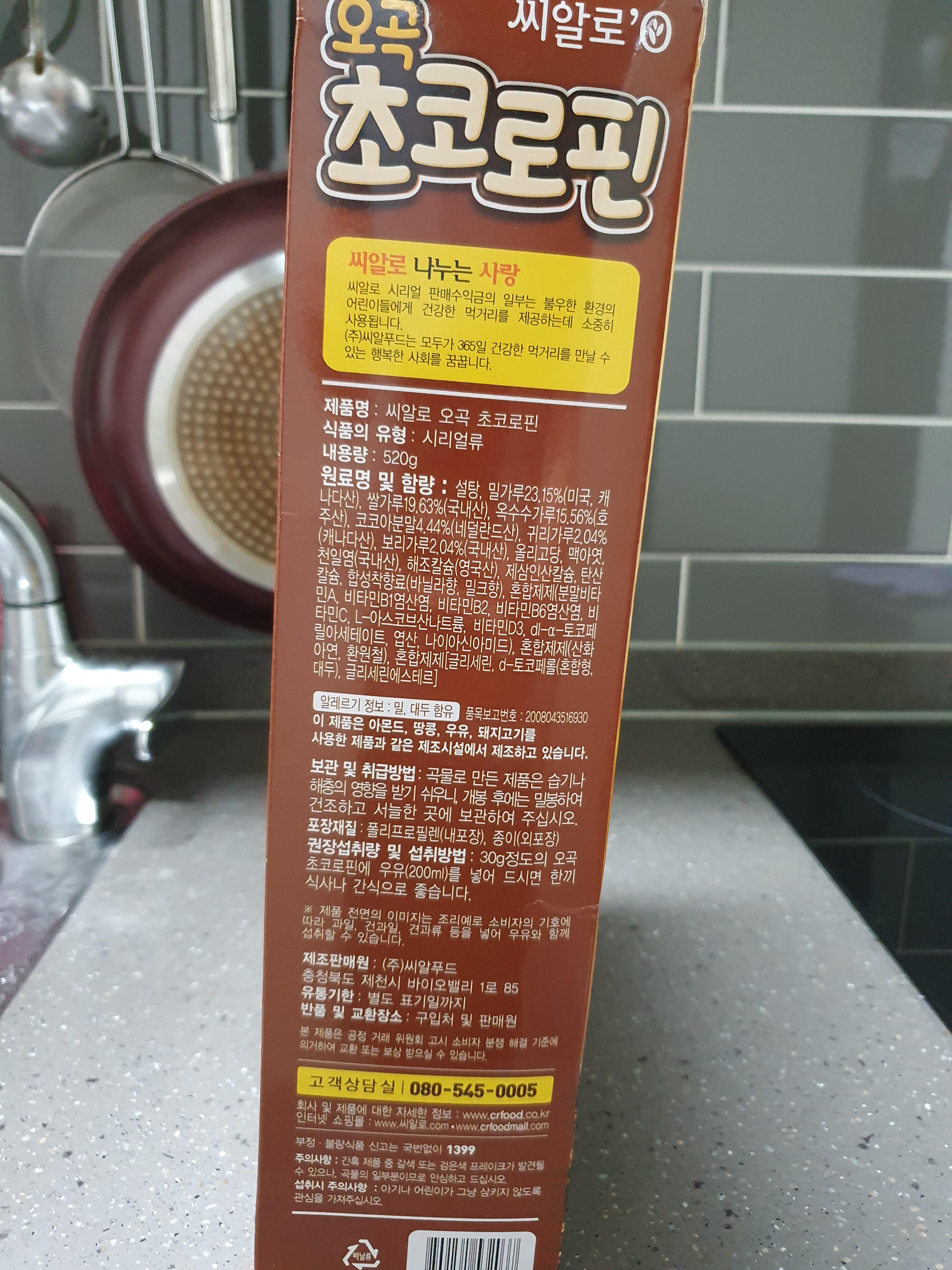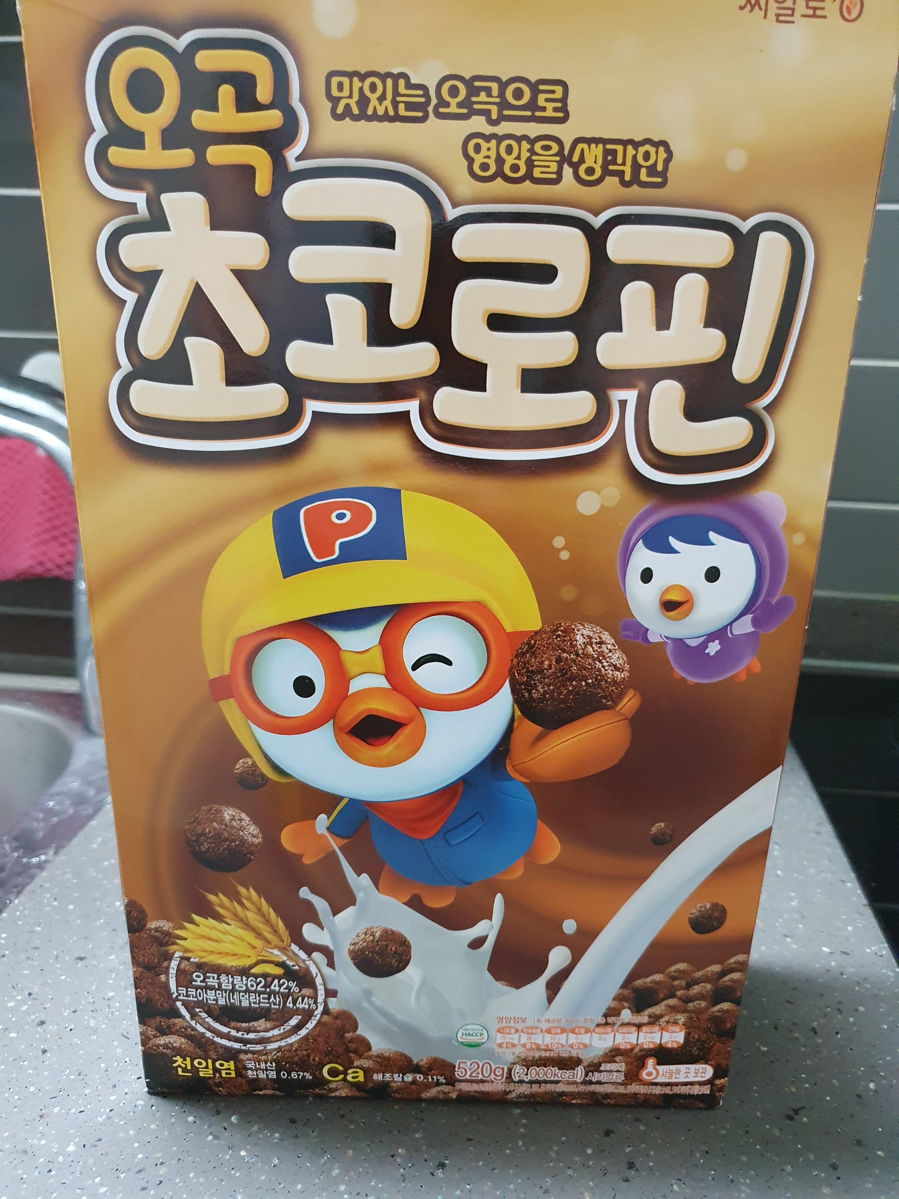 씨알로의 오곡 초코로핀이다. 모델이 무려 뽀로로가 박혀있다...ㄷㄷ 아이들이 참 좋아할 것 같다. 물론 내가 뽀로로 때문에 오곡 초코로핀을 구매한 건 아니다.ㅋㅋ
