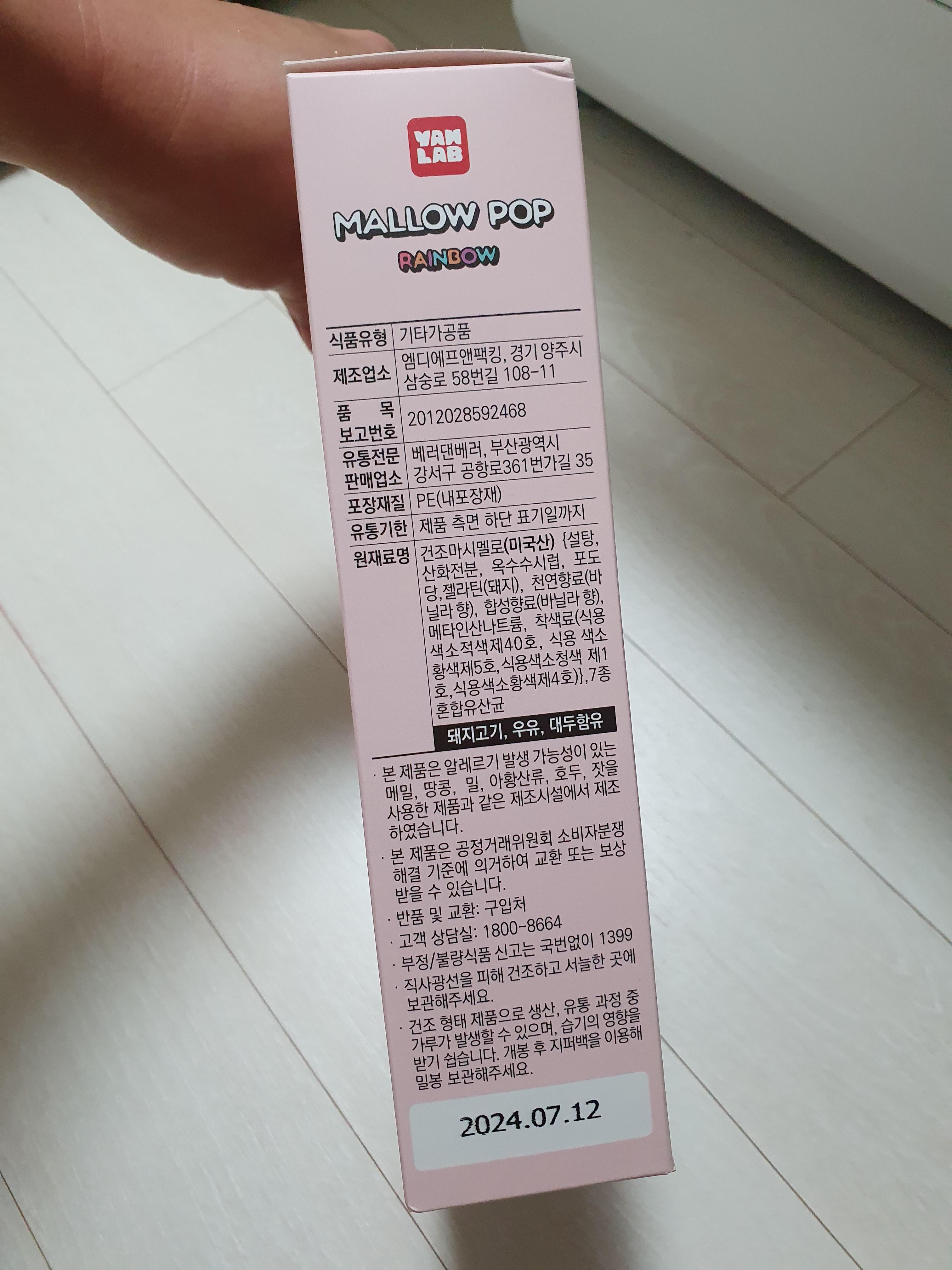 화이트하고 레인보우가 있었는데 후후... 난 그냥 먹을 생각이었던지라... 화이트보단 먹기 예쁜 레인보우를 선택했다. 상품명은 정확히 '멜로팝 - 레인보우'이다.