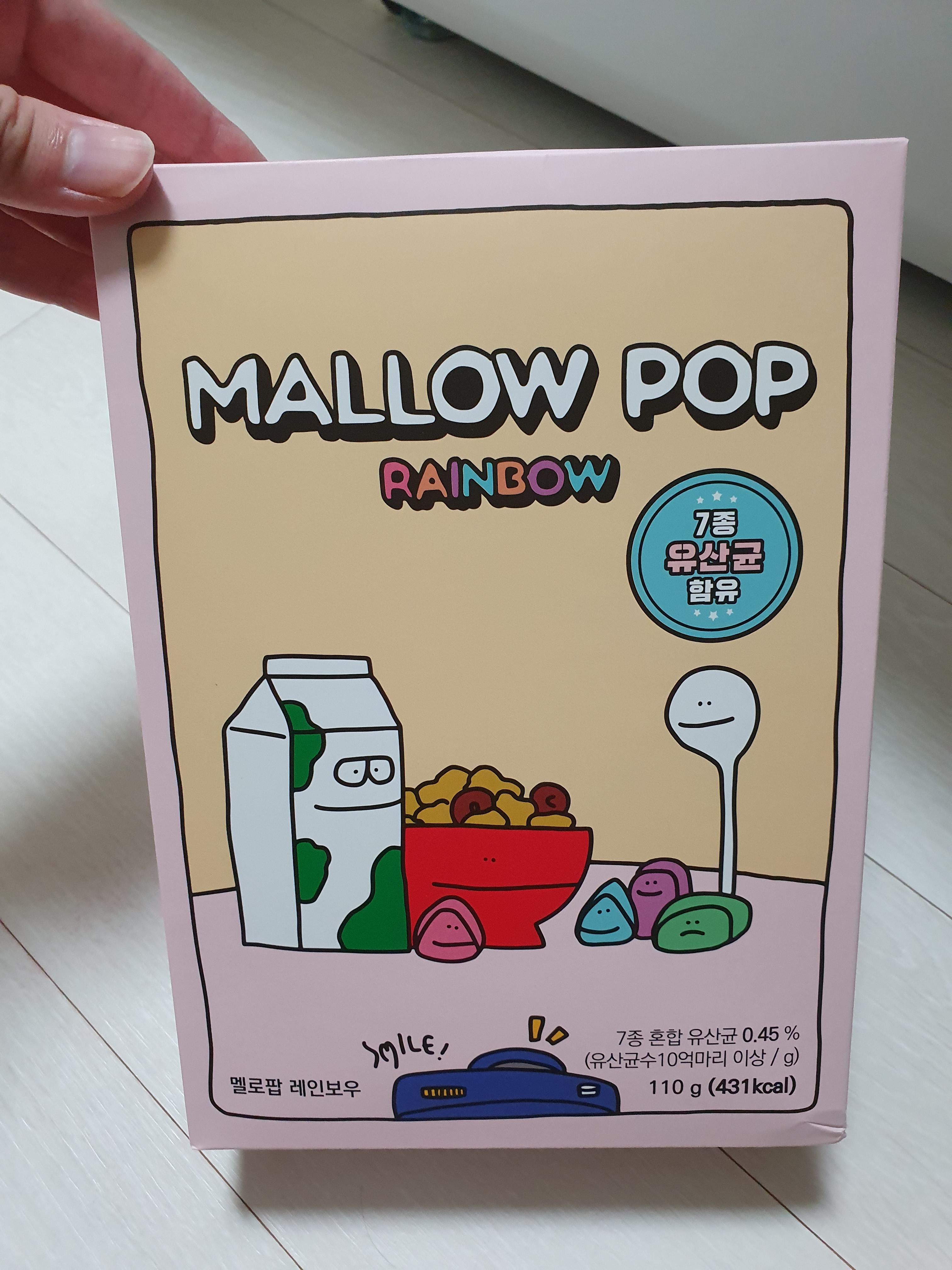 화이트하고 레인보우가 있었는데 후후... 난 그냥 먹을 생각이었던지라... 화이트보단 먹기 예쁜 레인보우를 선택했다. 상품명은 정확히 '멜로팝 - 레인보우'이다.