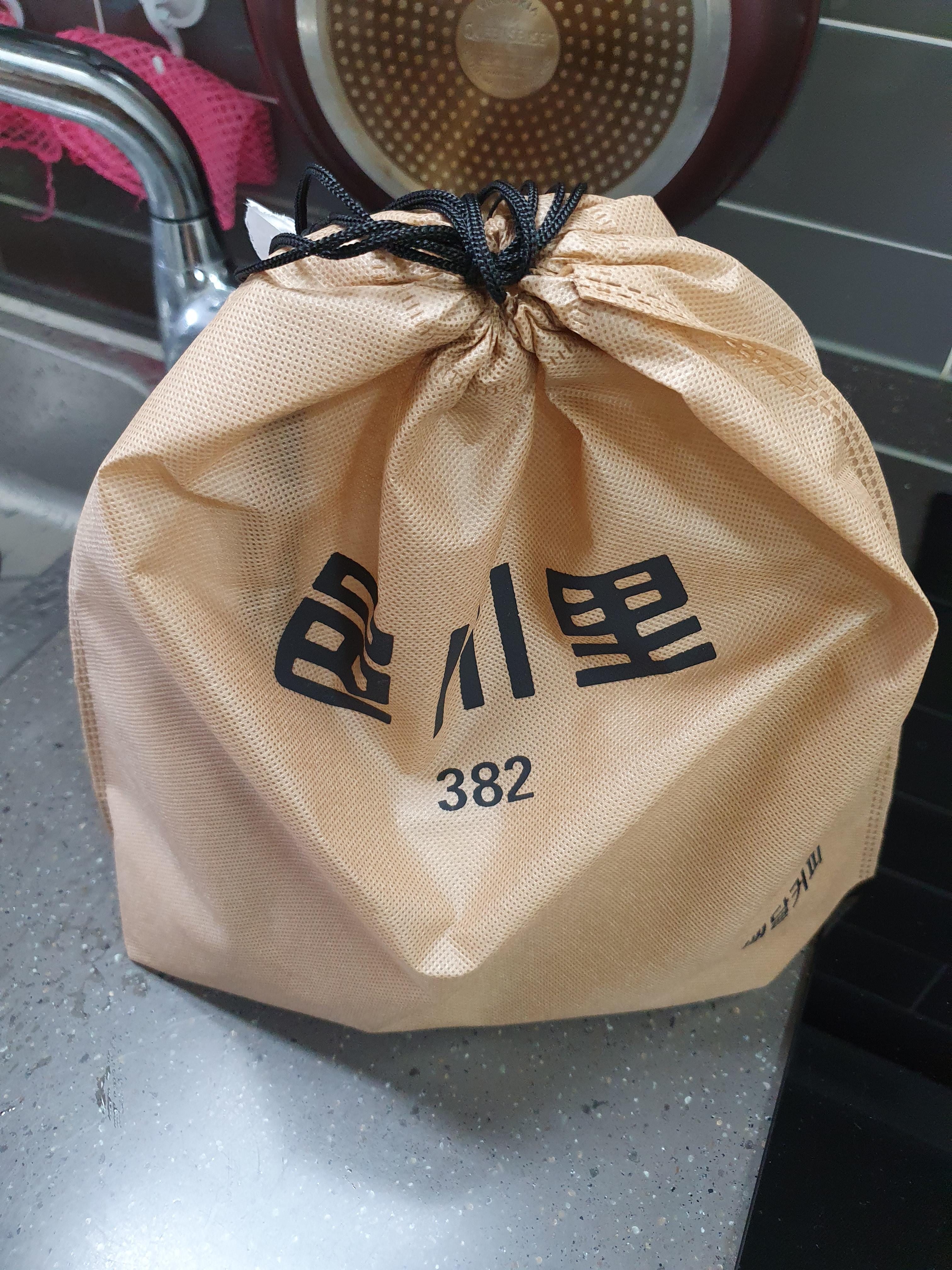배달팁은 2500원이었고 총합 17400원 나왔다. 그리고 특이하게도 보따리에 담겨서 온다. 남겼다 사용할까 했는데 안이 좀 거뭇한 것들이 많이 굴러다녀서 컷!