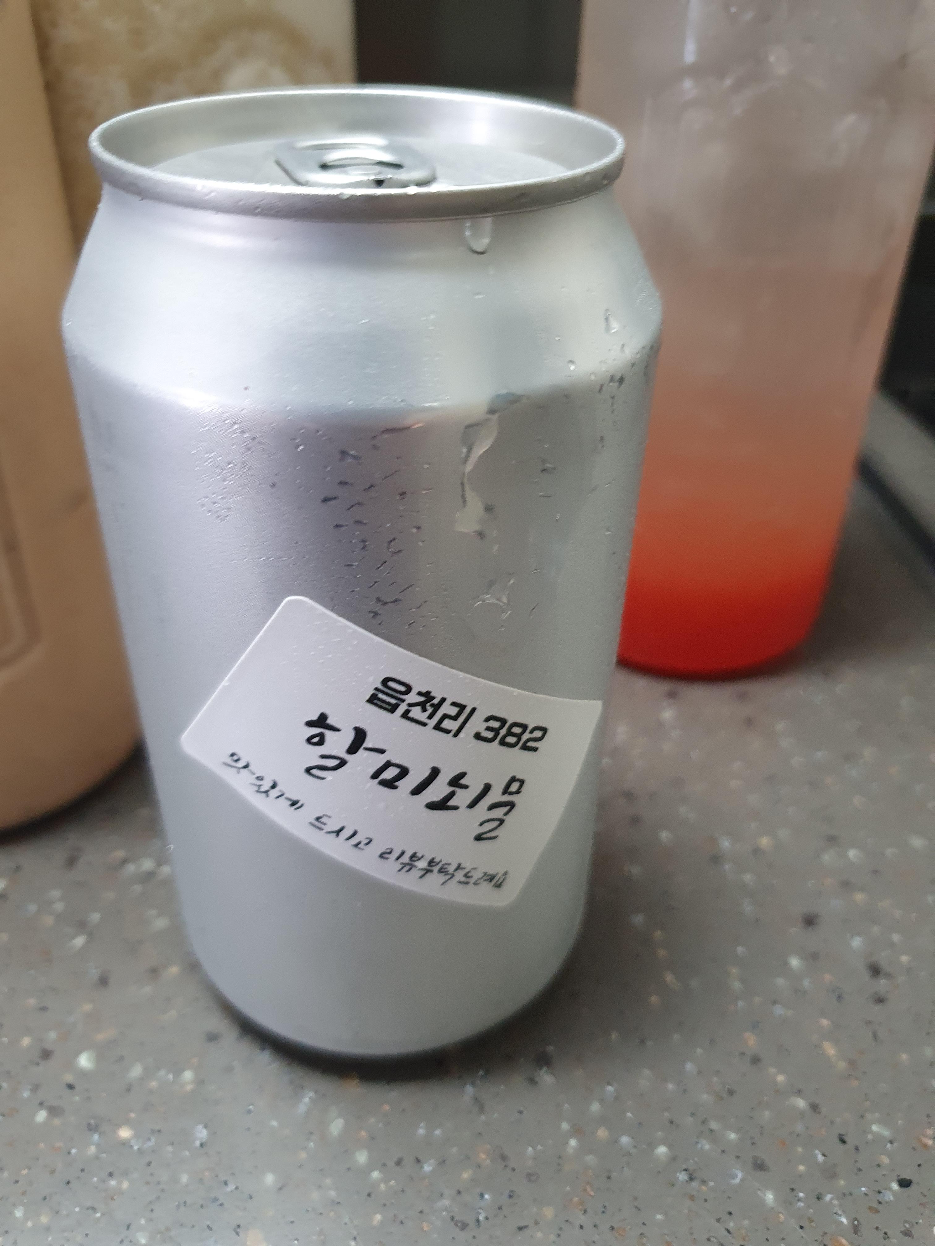 후후... 커피를 주문할까 생각했지만 식사대용으로 먹으려고 미숫가루하고 바나나스무디를 주문했고 상큼하게 레몬자몽에이드를 구매했다. 가운데 있는 은색캔은 아이스티이다. 리뷰이벤트로 받았다. 아이스티 퀄리티가 좋았다. 가끔 리뷰이벤트로 아이스티 받으면 마치 0.8샷 같은 느낌쓰의 아이스티가 오기도 하는데 읍천리382는 그렇지 않았다. 되려 1.2샷 느낌쓰.