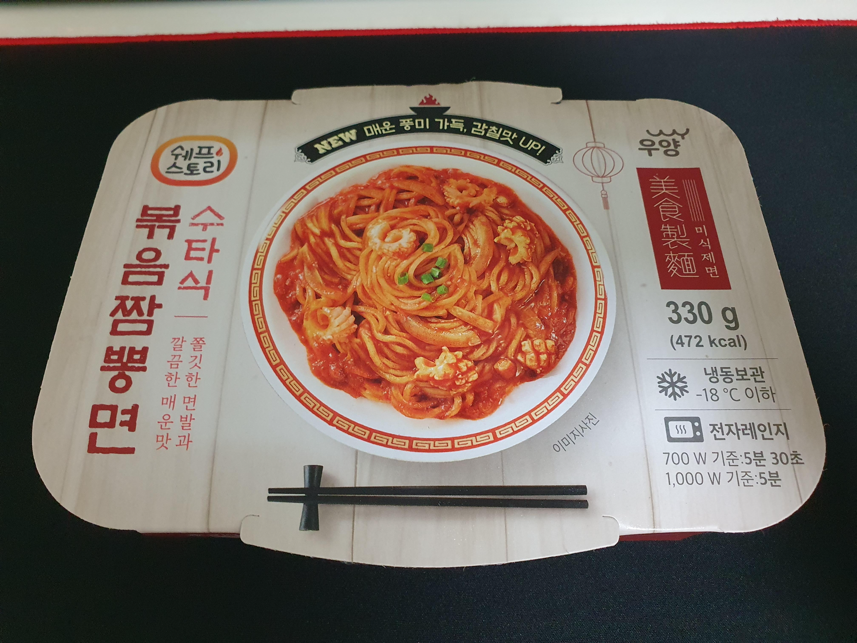 '쉐프스토리'라는 곳이었다. 냉동식품이고 수타식 볶음짬뽕면이라고 적혀있다. 쫄깃한 면발에 깔끔한 매운맛이라고 하는데 맞는 것 같다. 소스가 생각보다는 깔끔했고 면발이 완전 쫄깃하다고는 말 못 하겠지만 이 정도면 충분한 것 같다. 뚝뚝 끊기는 짬뽕면은 아니라고 생각하면 된다.
