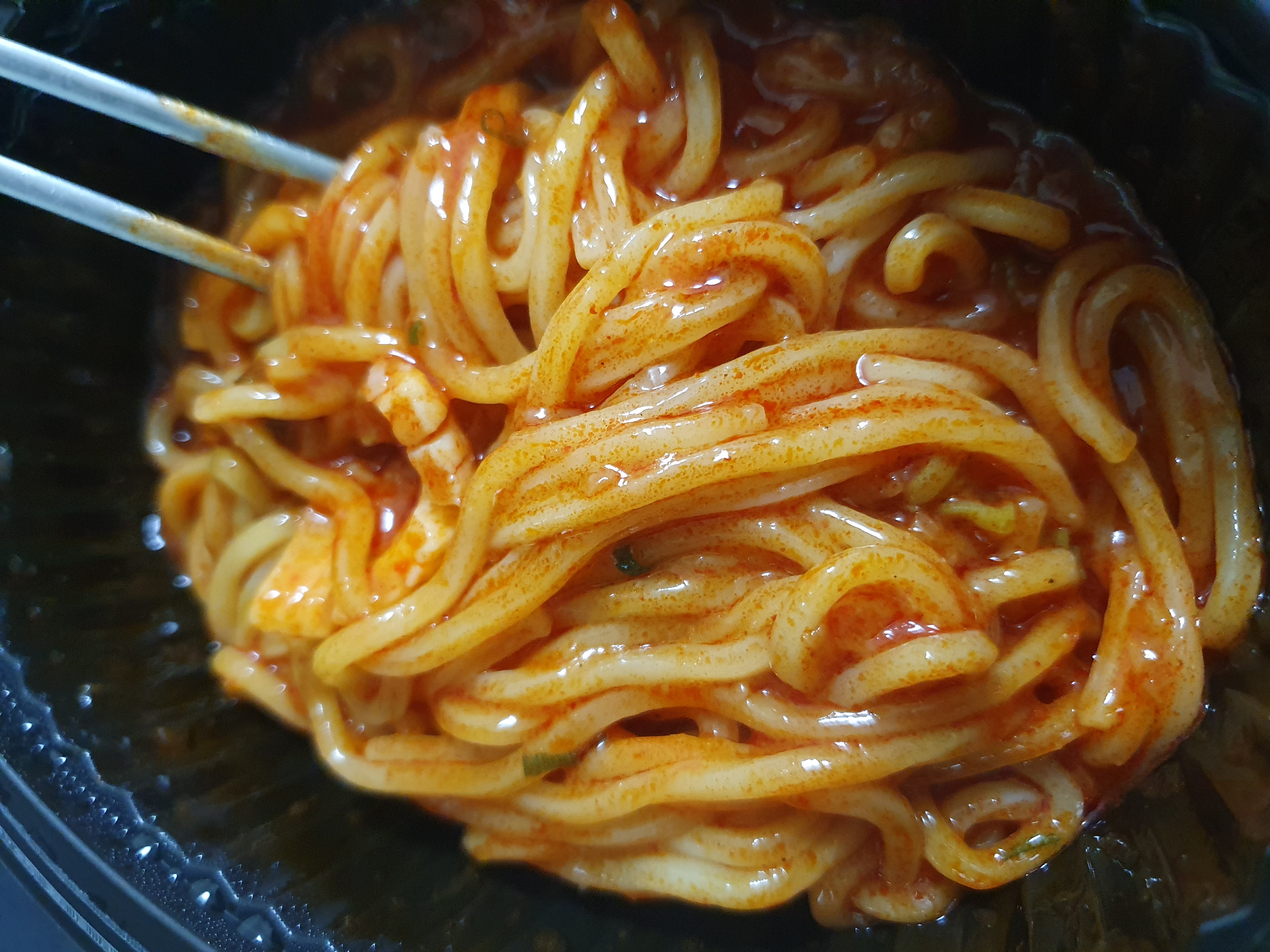 왜 비닐을 벗기고 더 돌려주냐면 좀더 졸여지고 면을 좀 더 탱글 하게 해주는 것 같다. 물론 내 개인적인 방법이긴 한데 조리방법대로만 하면 살짝 맛이 1%부족한 느낌이 있다. 빨리 녹이고 익히고 안에 오징어가 터지니까 처음에는 비닐을 씌운 상태로 많이 돌리고 나중에 비닐 벗긴 채로 조절하면서 돌리면 좀 더 맛있게 된다는 말이다.