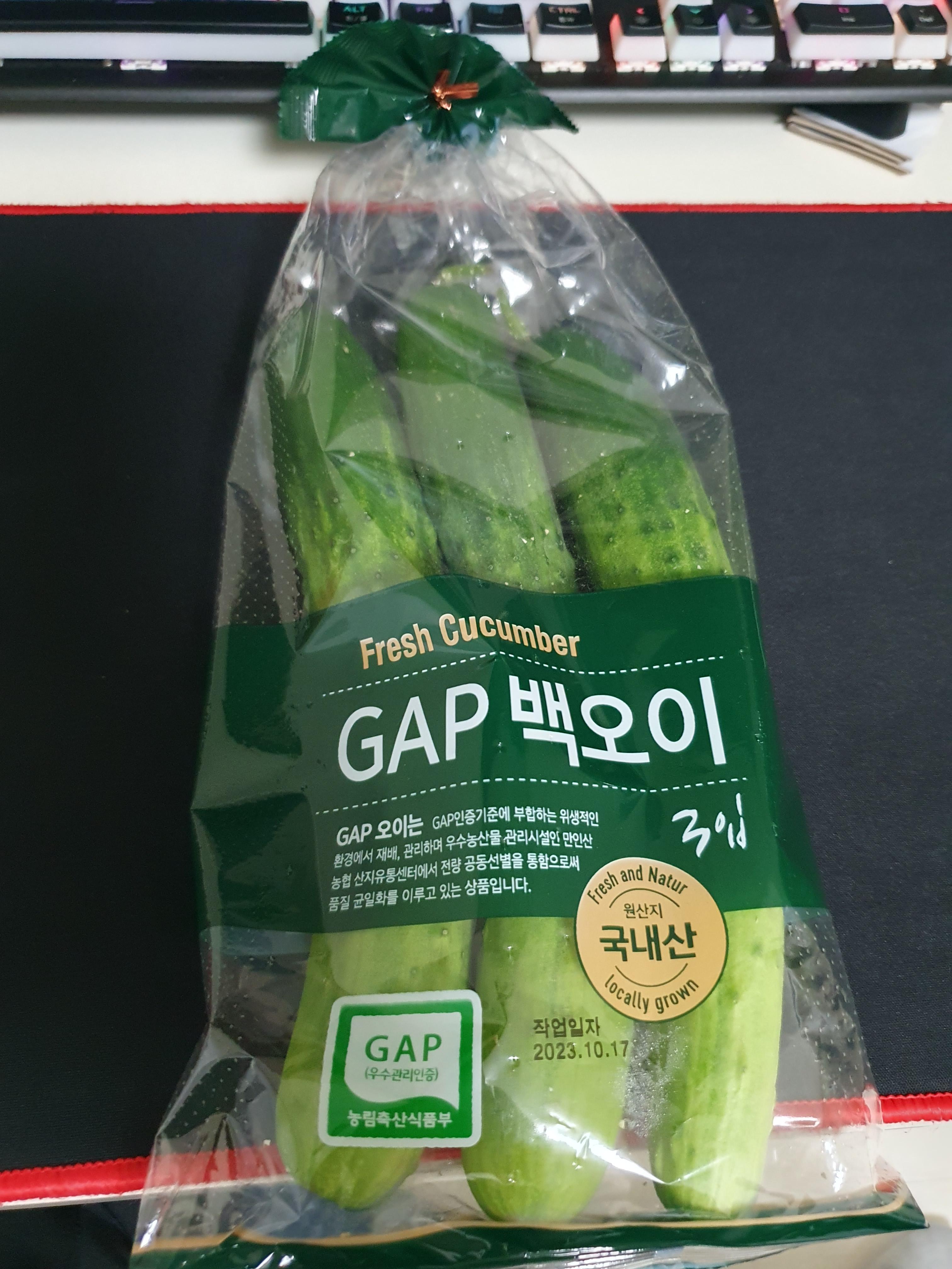 배달로 주문을 했고 오이도 다양한 종류들이 배달 가능한데 근래에는 계속 GAP 백오이를 주문하고 있다. 오이도 이게 너무 많이 시키면 다 먹기가 힘들어져서 혼자 기준으로는 3입씩 주문해서 먹고 또 주문하고 하는 게 좋은 것 같다.
