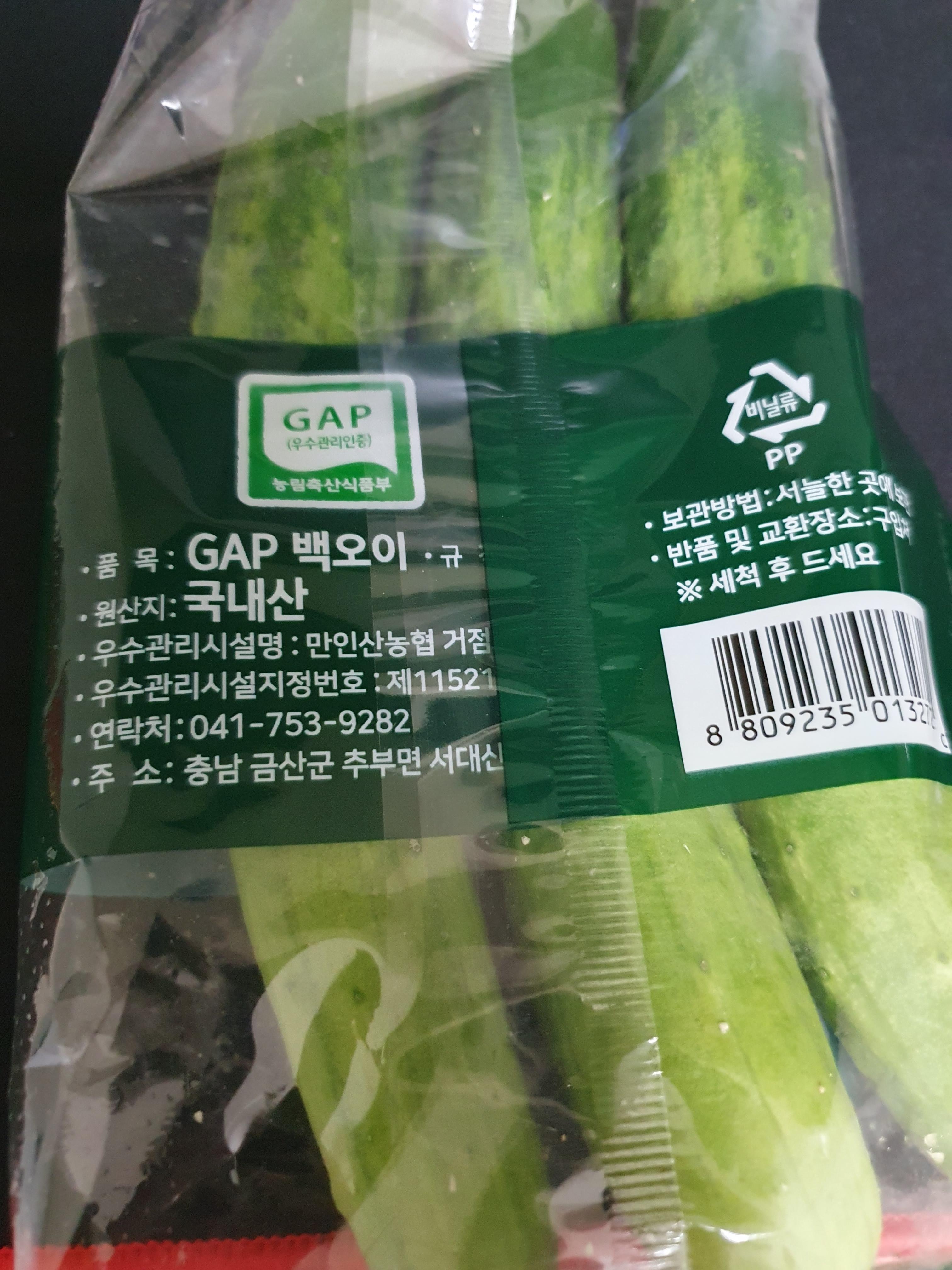 어쨌거나 농림축산식품부의 GAP 우수관리인증이 붙어있다. GAP오이가 무엇인가에 대해서 설명이 되어있는데 GAP인증기준에 부합하는 식품이라고 한다. 해서 GAP가 달린 다른 오이들도 많이 있다.