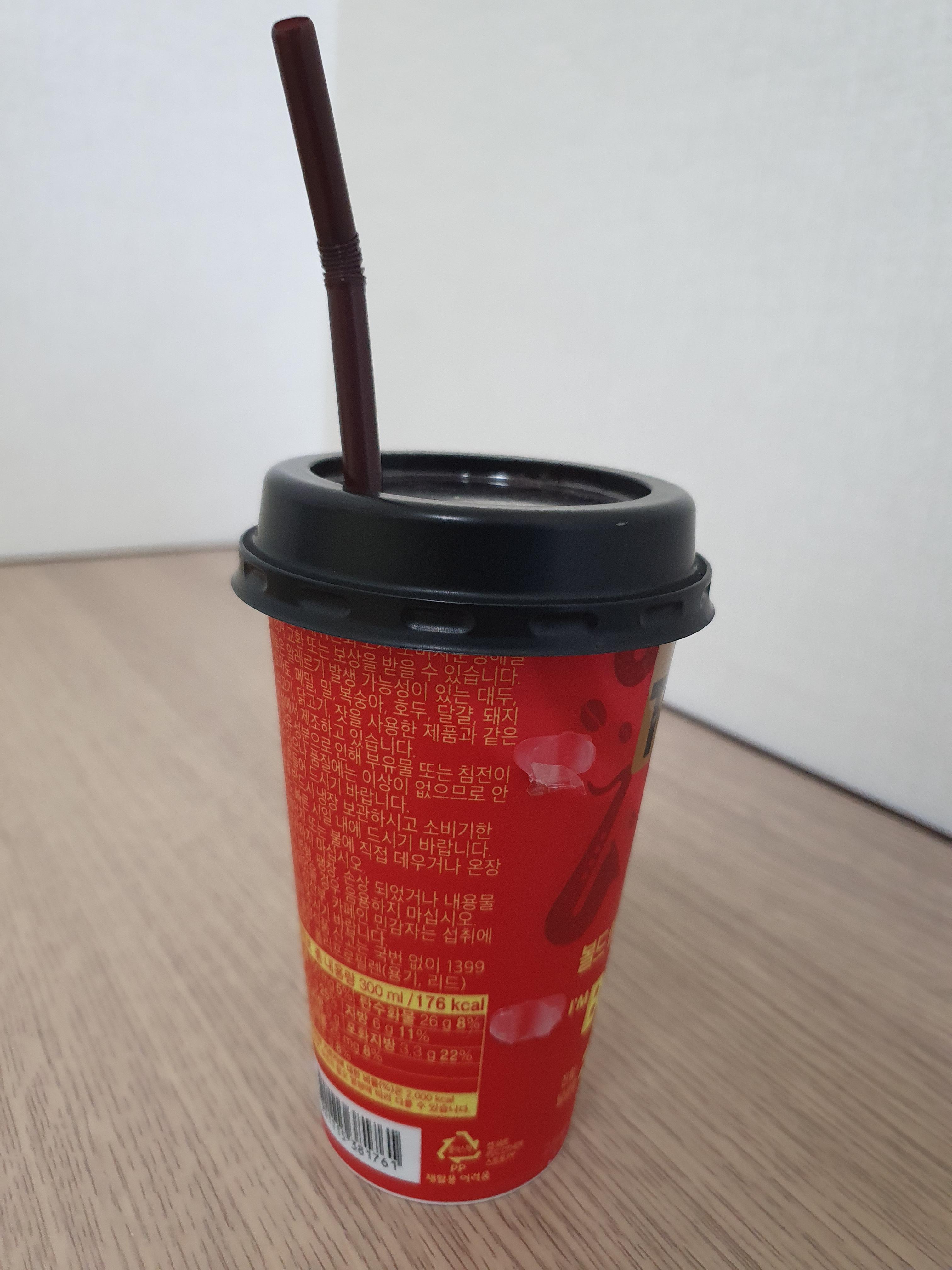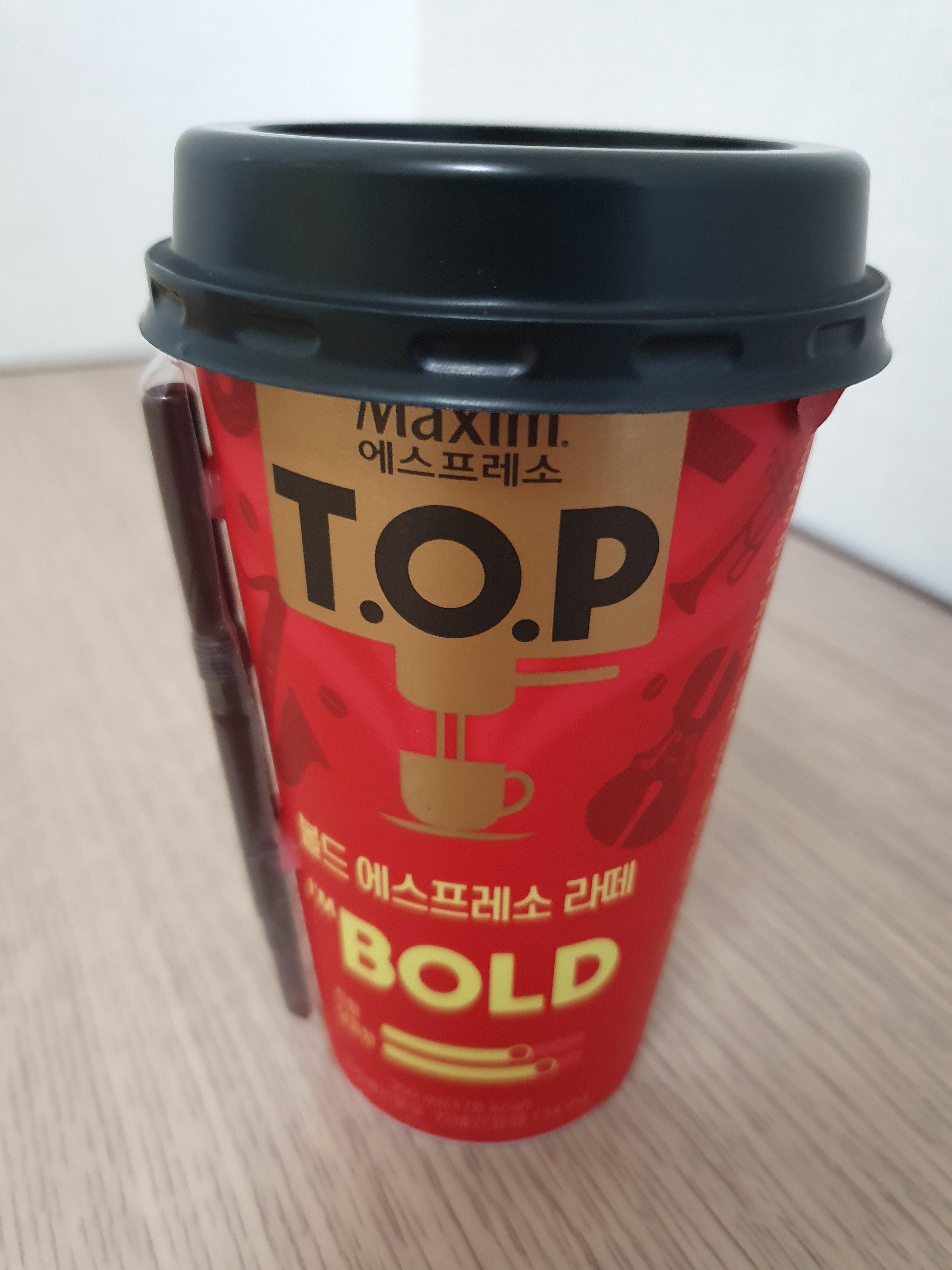 커피의 향이 진한 것은 아니고 달달함이 강한 것도 아니고 우유가 강하게 느껴지는 것도 아니었다. 설명에는 '다크 로스팅 커피 추출액을 사용했다.'라고 되어있는 만큼, TOP 볼드 에스프레소 라떼는 이 로스팅 과정이 좀더 강하게 된 것으로 보인다.
