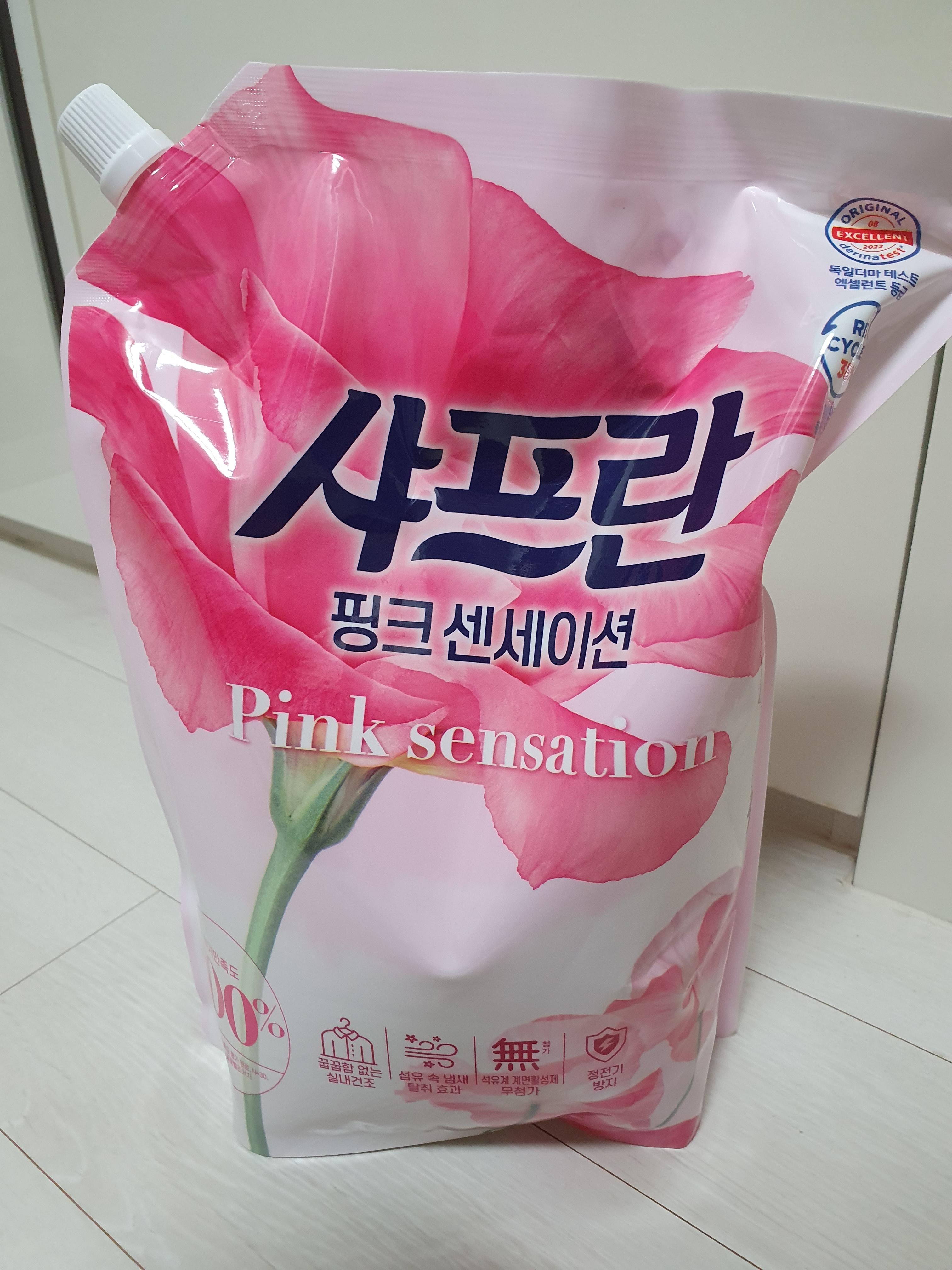 그래 이거지... 맞다.-_-ㅋ 가성비 개 지리는데 향 좋고 섬유유연제 역할 톡톡하게 해내는 그 제품... '샤프란 핑크' 시리즈였어... 중요한 건, 예전에도 분명 '핑크' 시리즈는 써봤었다. 그 때는 이런 감동 받지 못했고 이 향도 아니었기 때문에 일단 '샤프란 핑크 센세이션' 이 녀석이 내가 원하는 섬유유연제인 것 같다.
