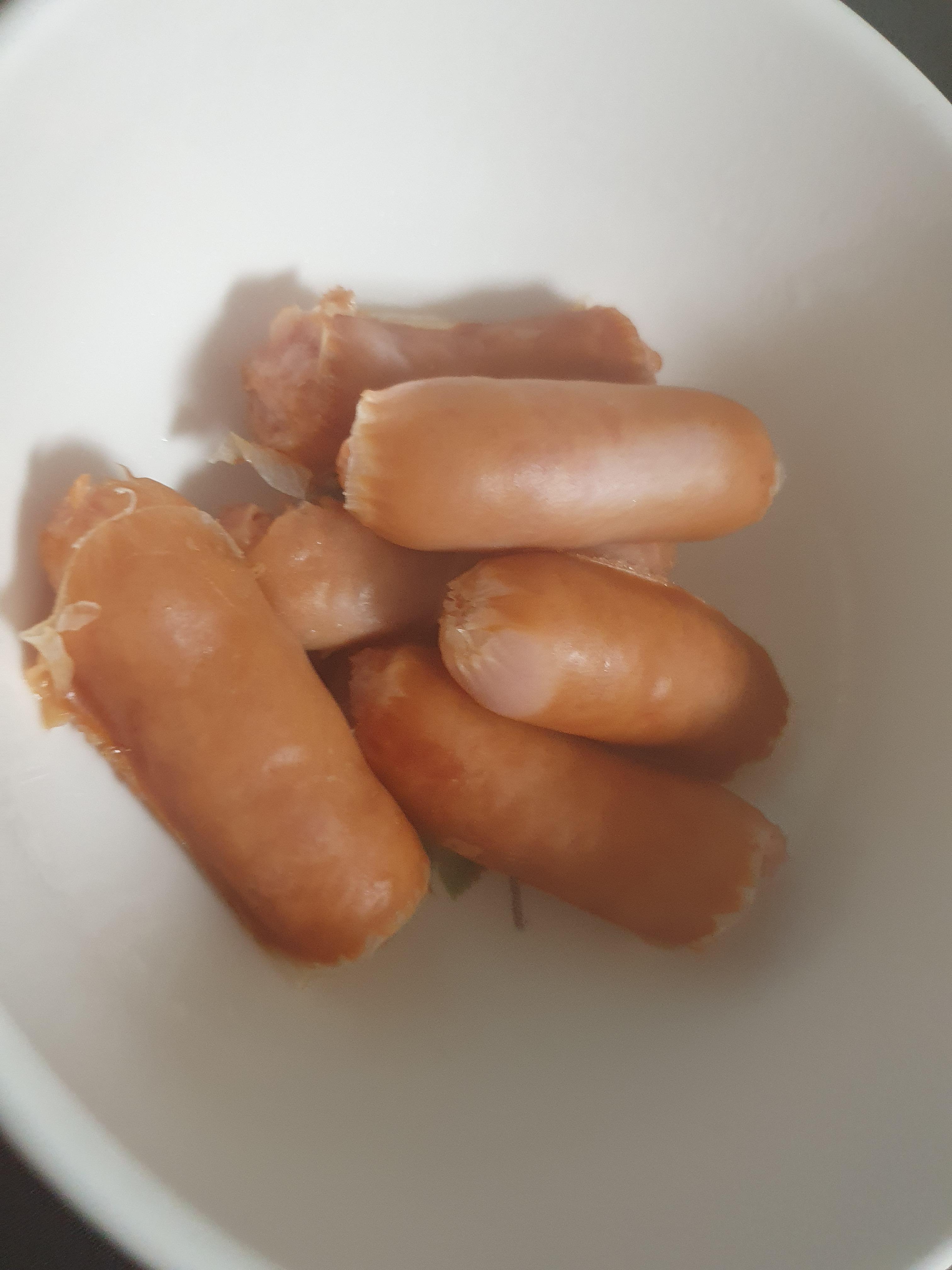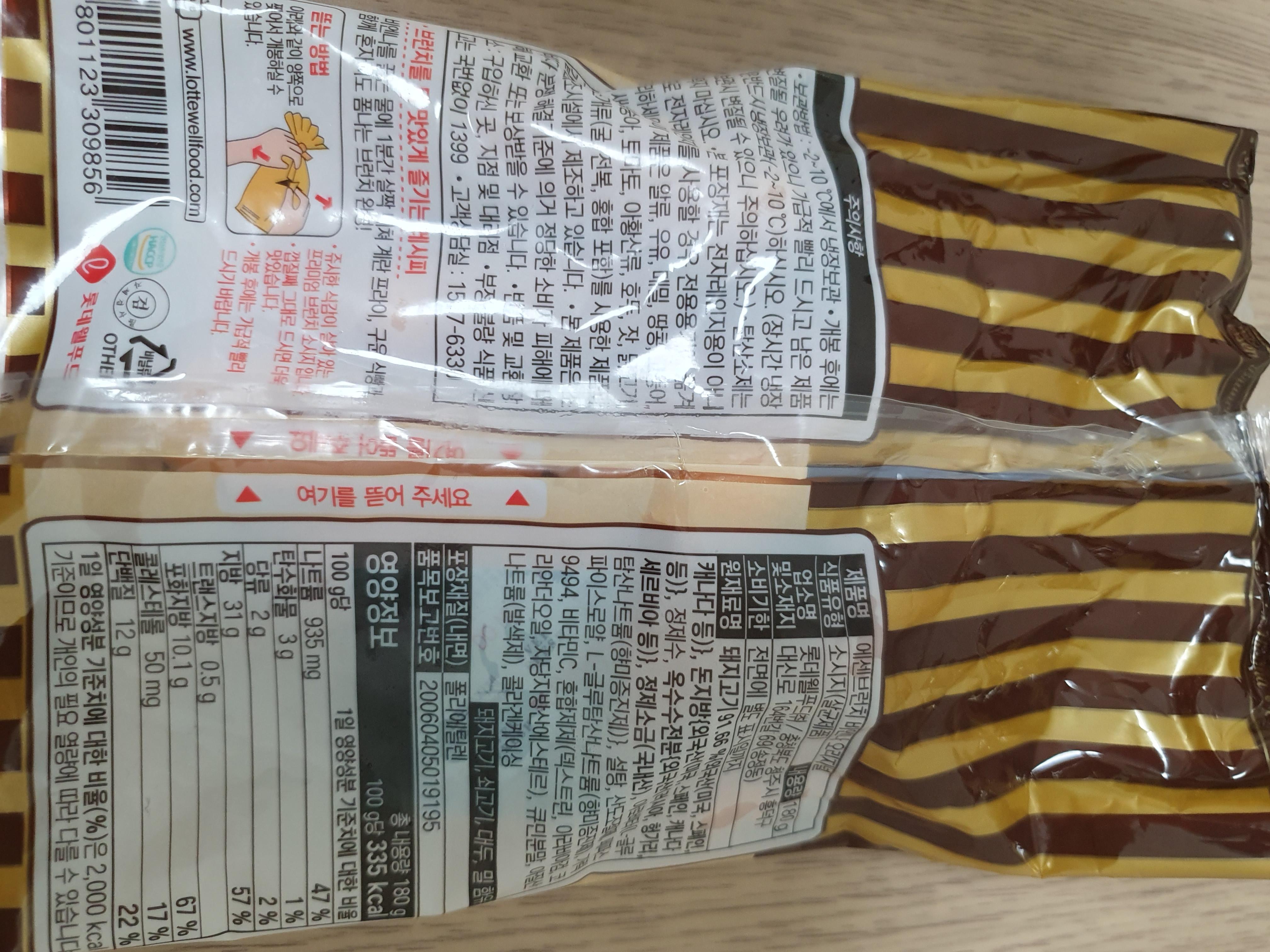 롯데 제품이고 맛에 대해서 이야기를 해보자면 음... 모양은 일단 짤막하지만 일반적인 비엔나 보다는 길고 후랑크보다는 짧은 어중간한 길이이다.