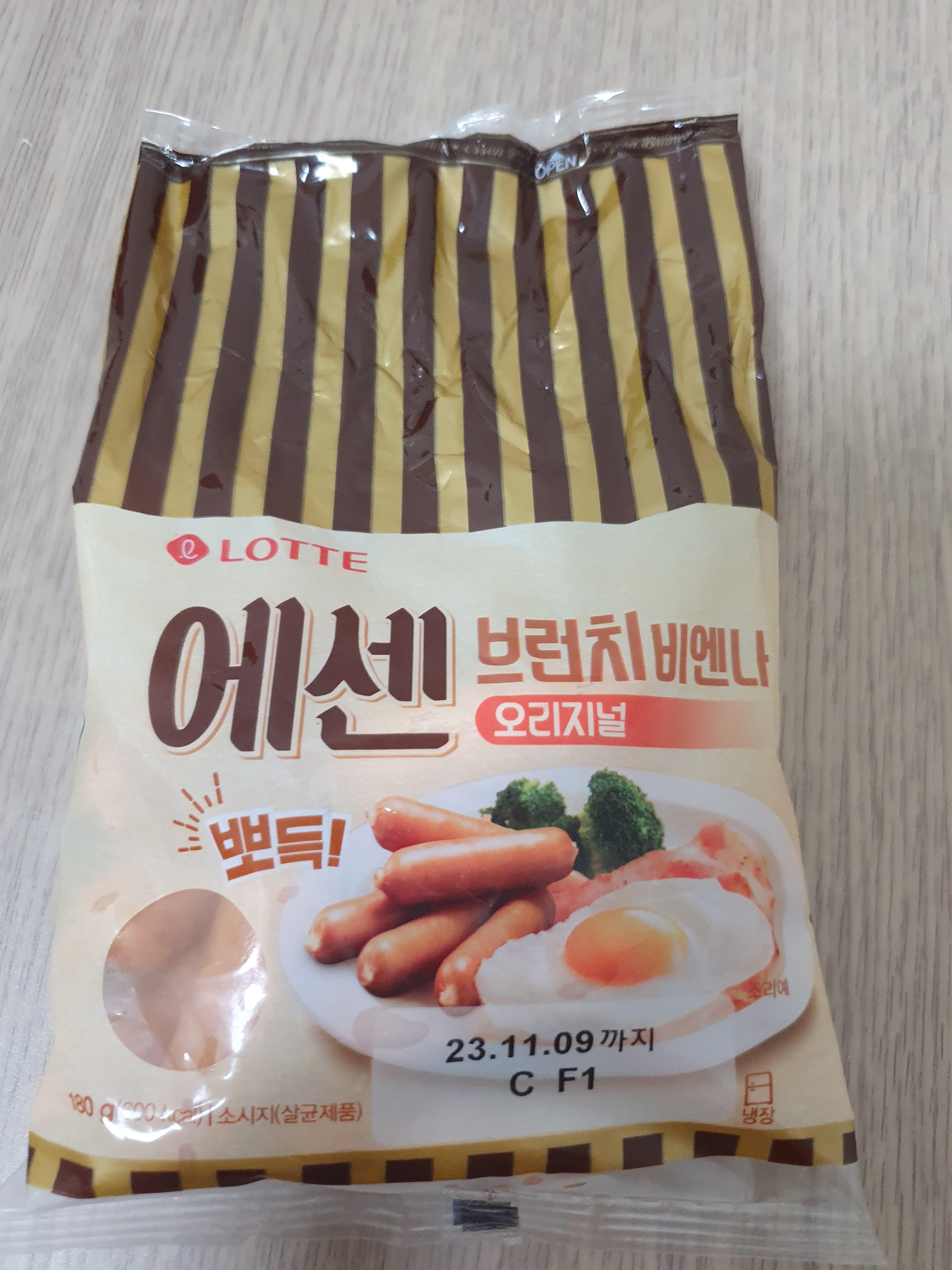오호 대폭 할인하길래 구매해봤다. 당시에 솔직히 뭐 맛은 크게 상관없고 적당히 그냥 저냥 먹을 수 있는 소시지 찾고 있었는데 마침 크게 할인이 들어와있었고 롯데 에센 브런치 비엔나 오리지널은 처음 먹어보는 것이라 구매를 해봤다.