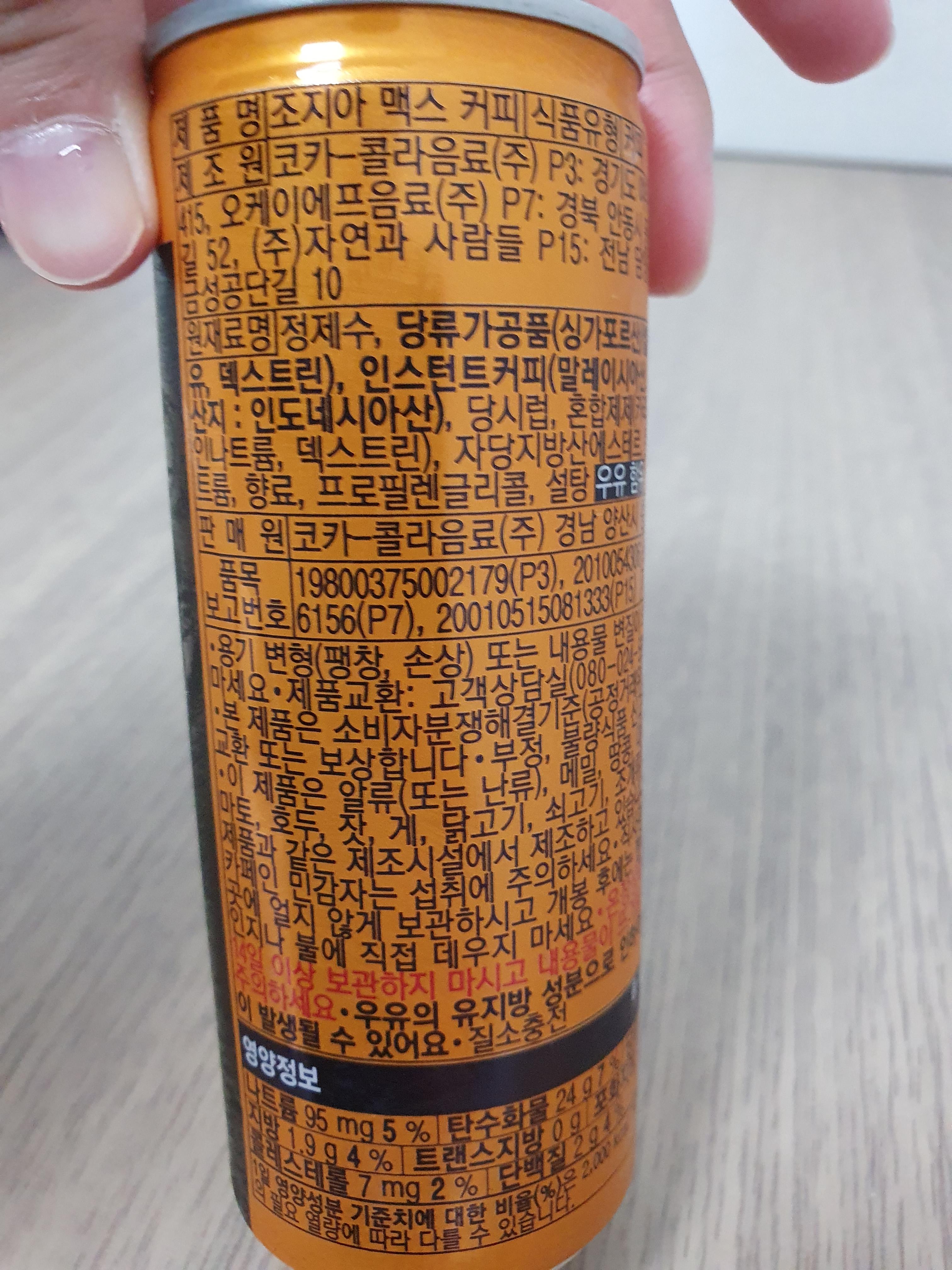 맥스의 가격은 약 1300원 정도이다. 오리지널하고 100원 차이 라고 할 수 있겠다. 칼로리는 121칼로리이고 카페인 함량이 좀 높다. 240ml에 카페인은 138mg이다. 크흠... 근데 인스턴트커피 중에 라떼 말고는 솔직히 카페인은 어쩔 수 없긴 하지만, 한 캔에 138mg라... 내용량이 240ml로 캔커피 치곤 많은 편이지만 카페인 함량이 상당히 높은 건 사실이다.